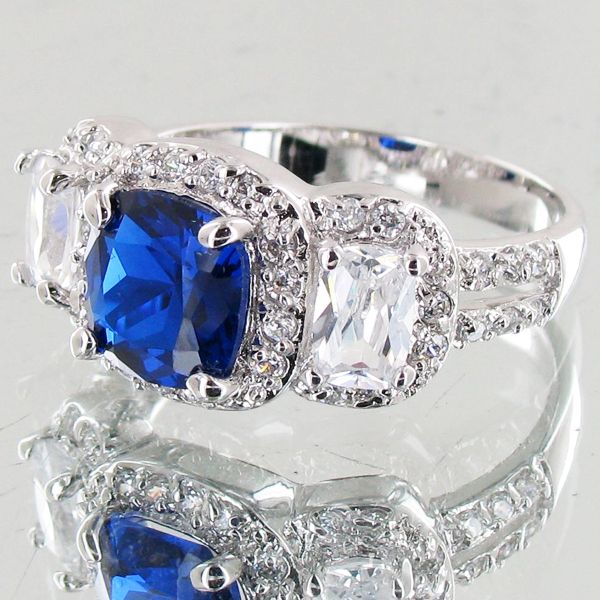 28.04twc Blue Lab Diamond White Gold Vermeil/925 Ring (JEW-3972)