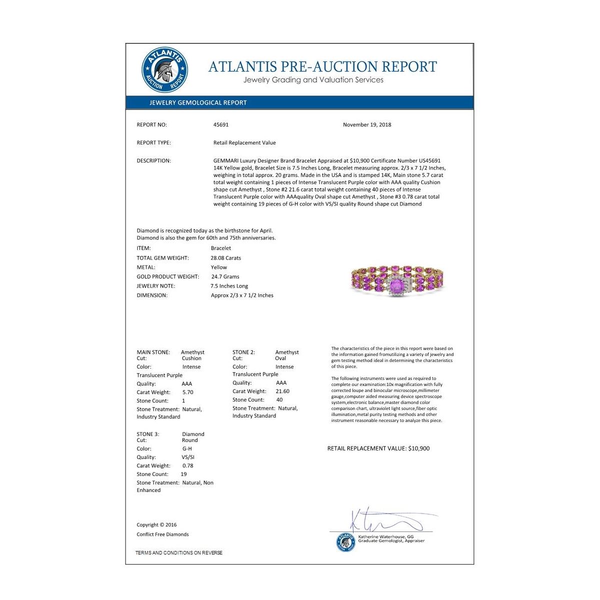 28.08 ctw Amethyst & Diamond Bracelet 14K Yellow Gold