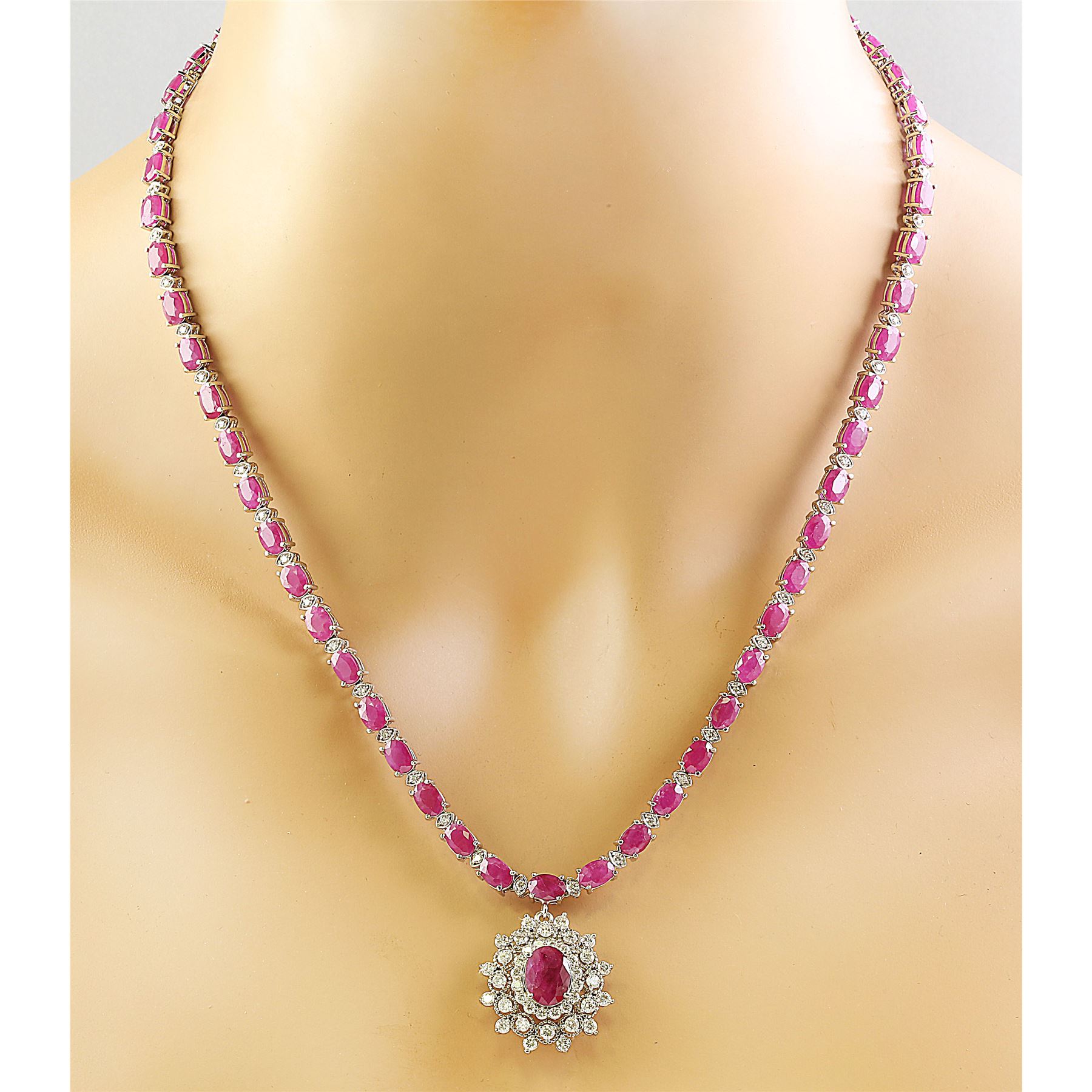 28.11 CTW Ruby 18K White Gold Diamond Necklace