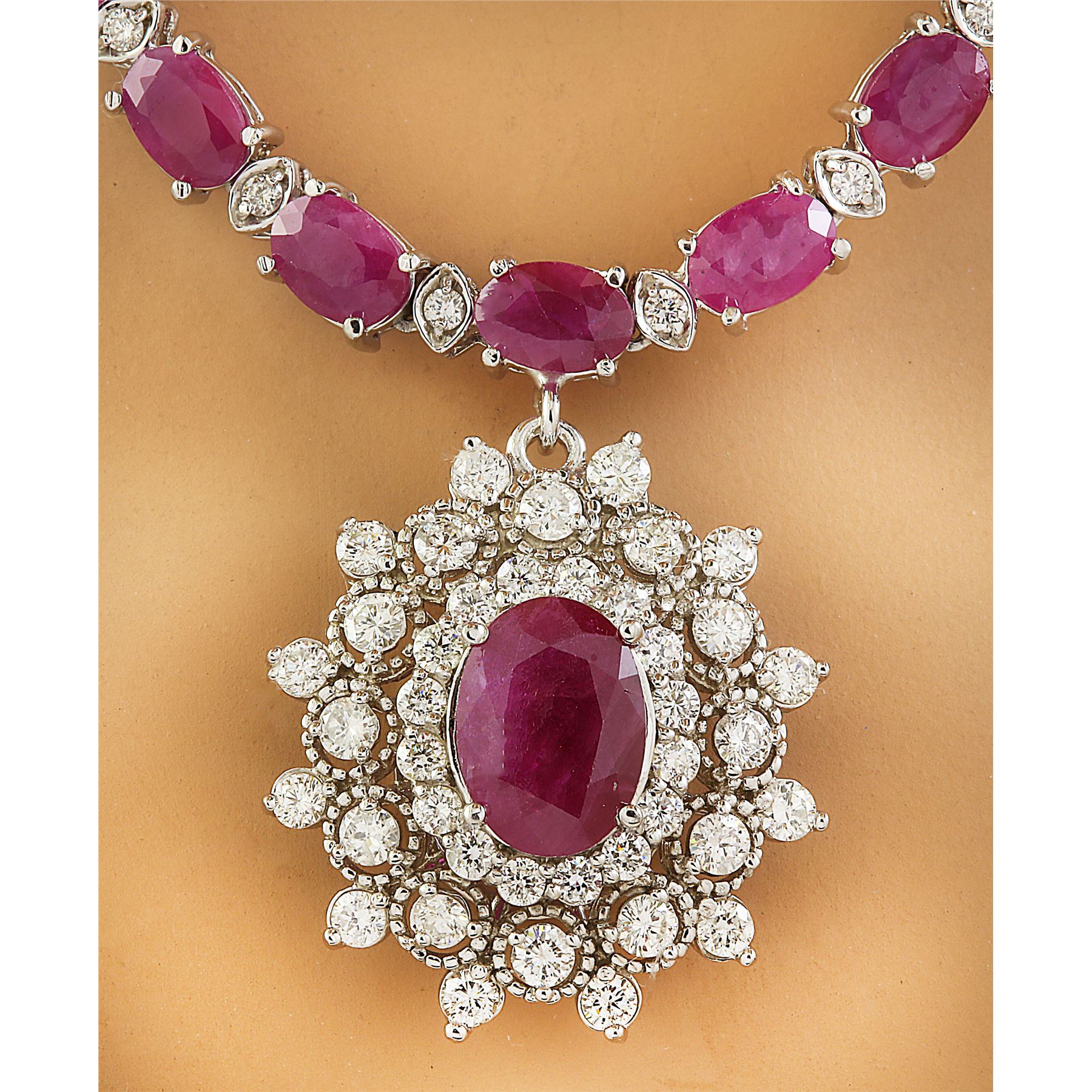 28.11 CTW Ruby 18K White Gold Diamond Necklace