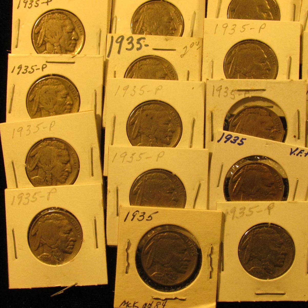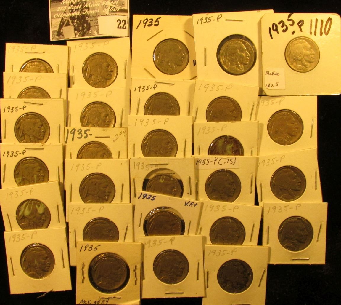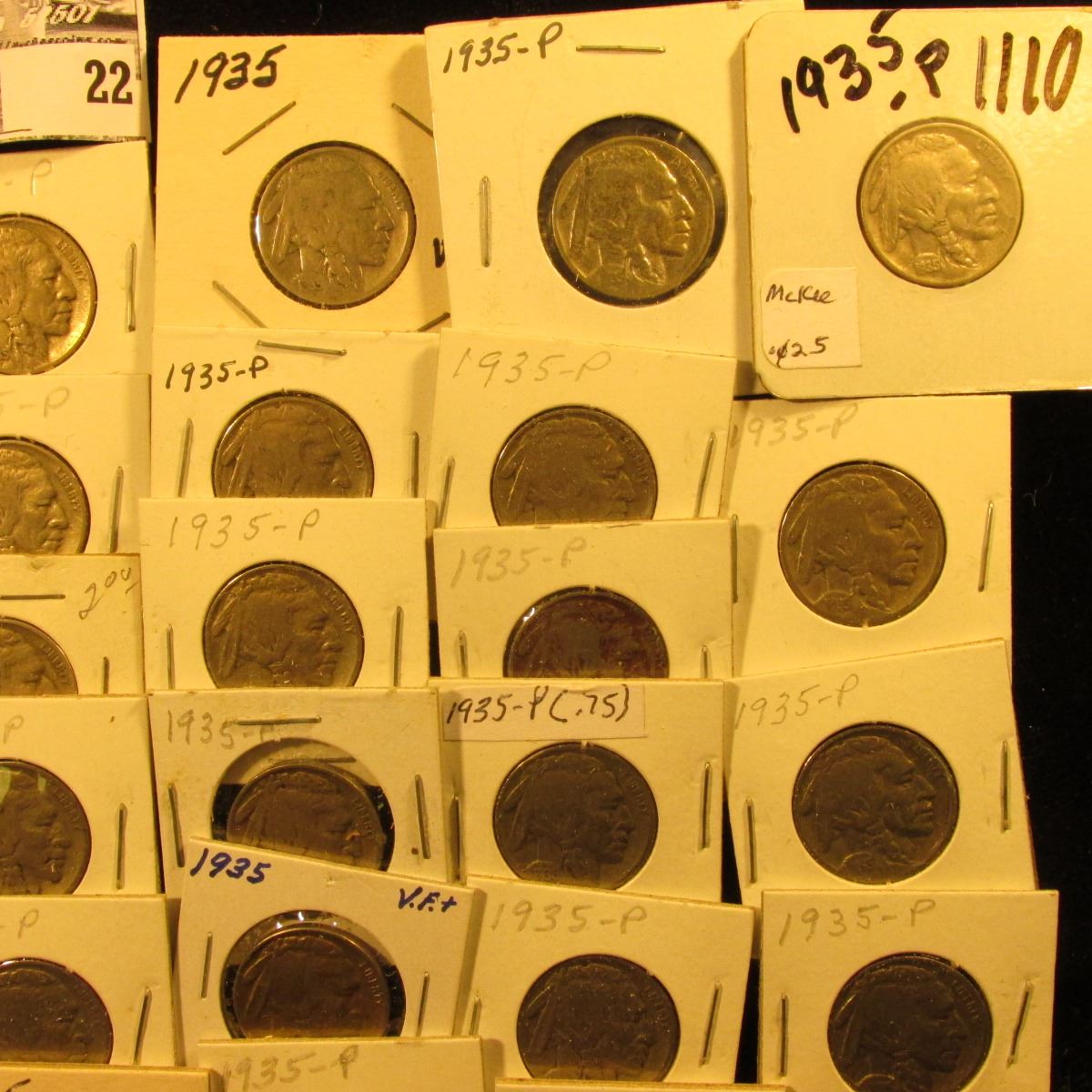 (28) 1935 P Buffalo Nickels all carded in 1 1/2" & 2" holders. Some slightly better grades.