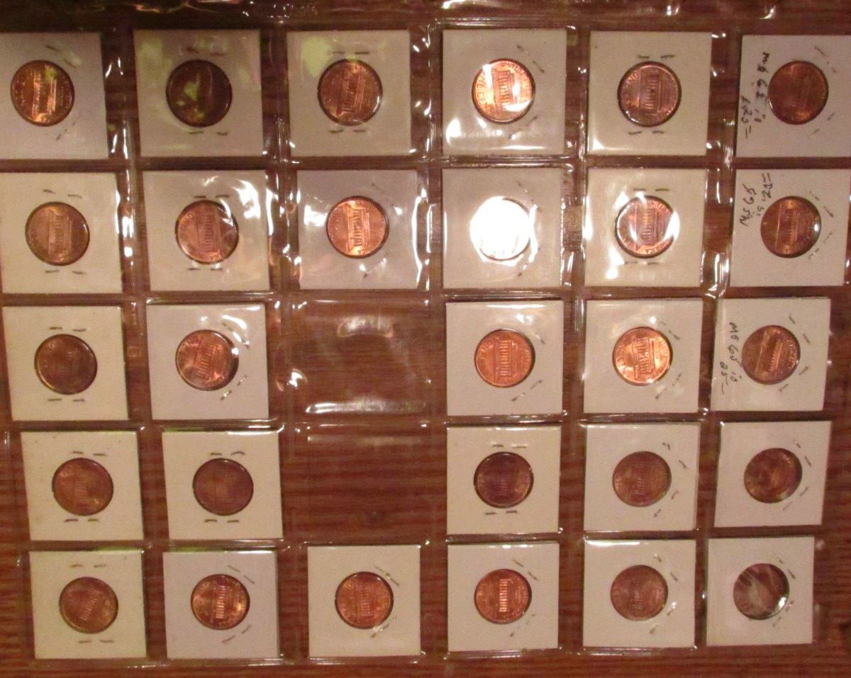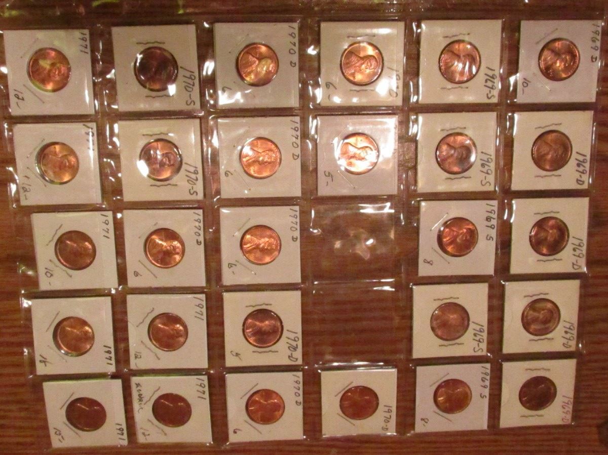 (28) 1969D-71 Lincoln Cents. All Red Unc to Gem BU. Priced in 1 1/2" x 1 1/2" flips and plastic page.