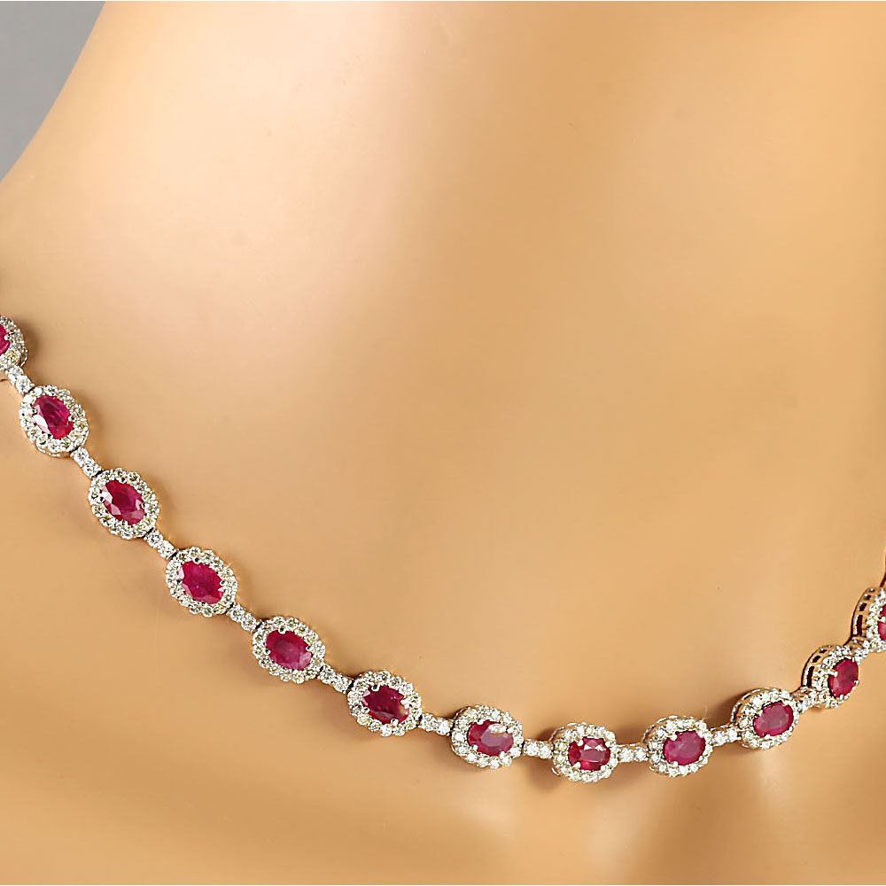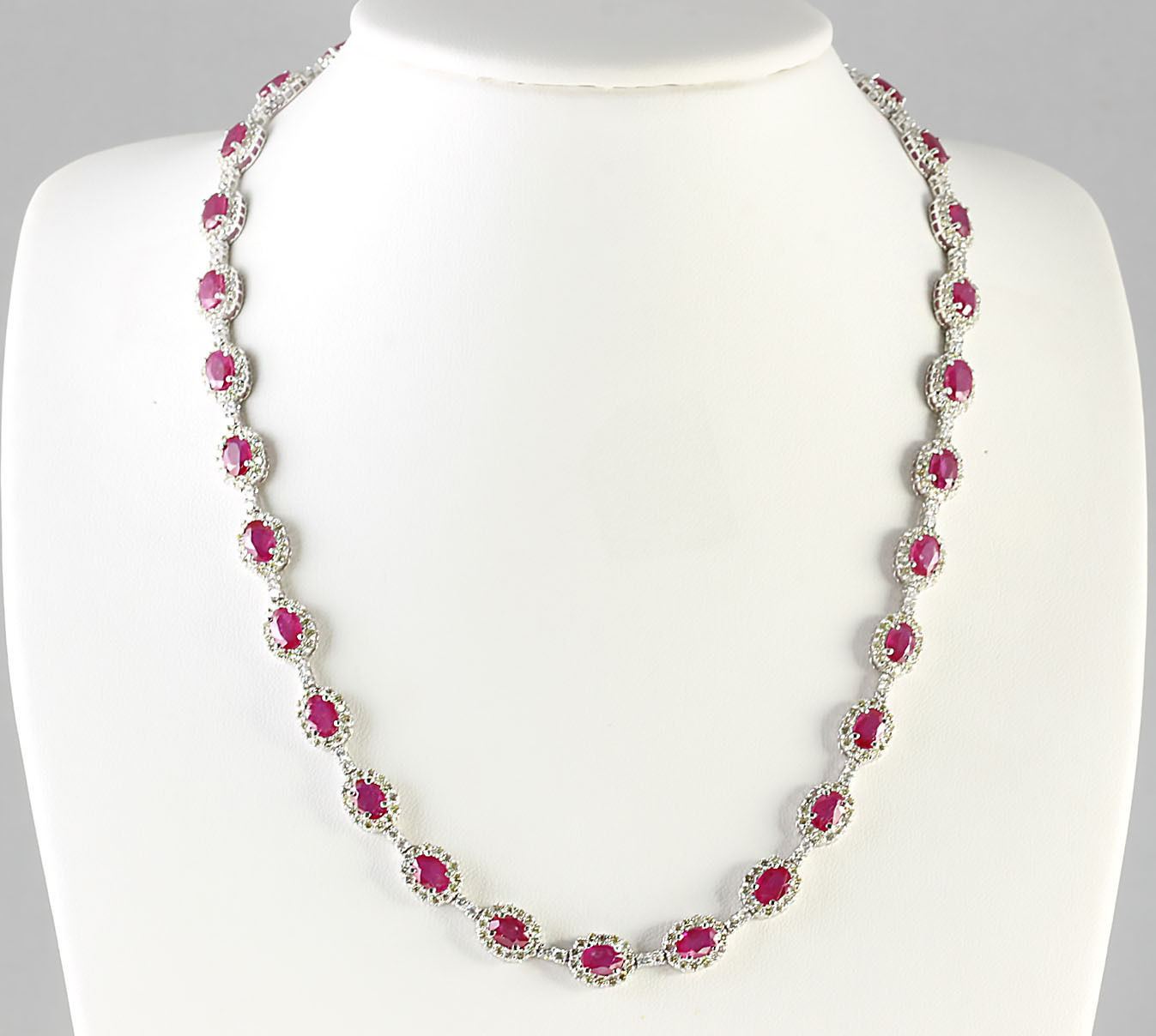 28.20 CTW Natural Ruby And Diamond Necklace In 18K White Gold