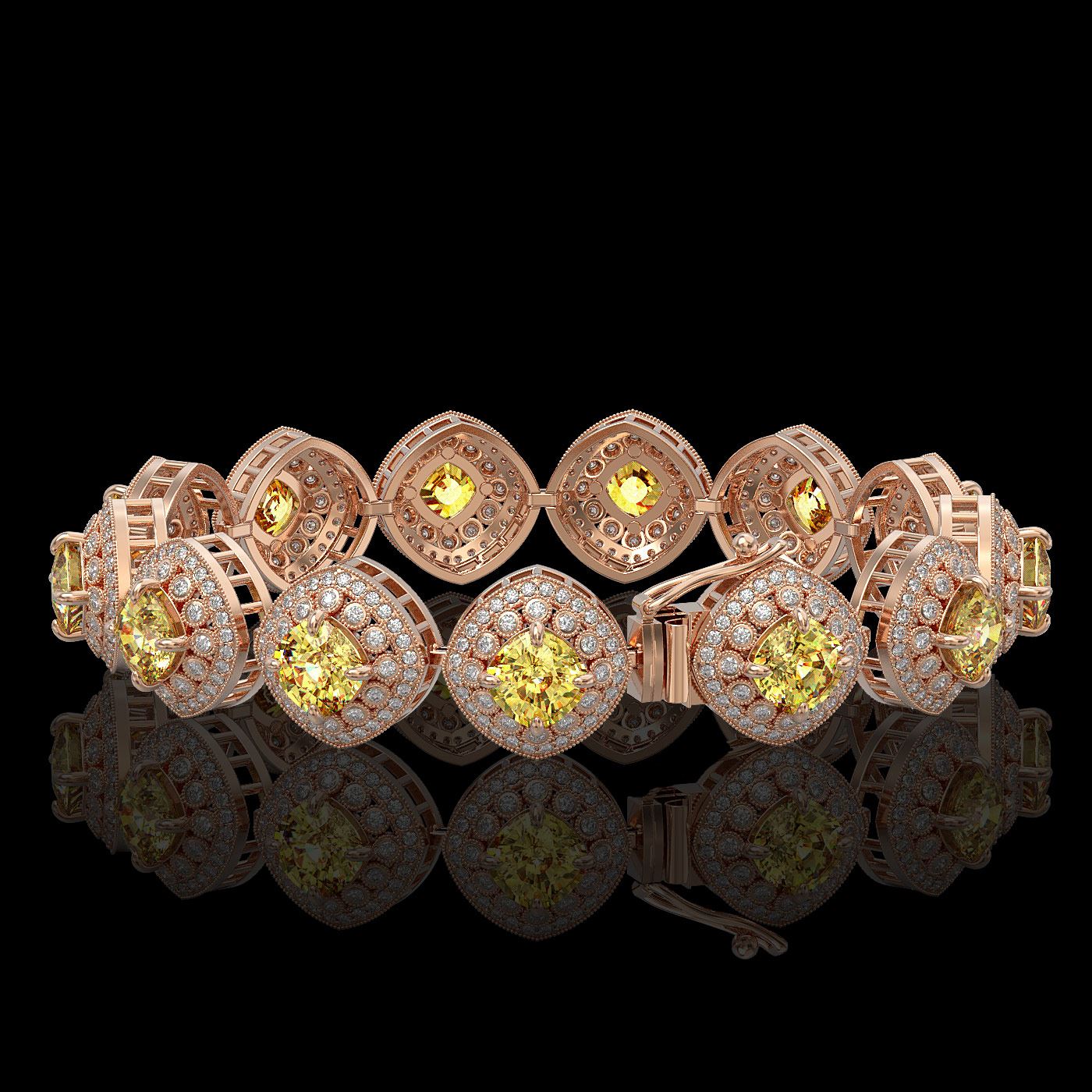 REF-805Y5X - SKU: 44160 ---- 28.35 ctw Canary Citrine & Diamond Victorian Bracelet 14K Rose Gold
