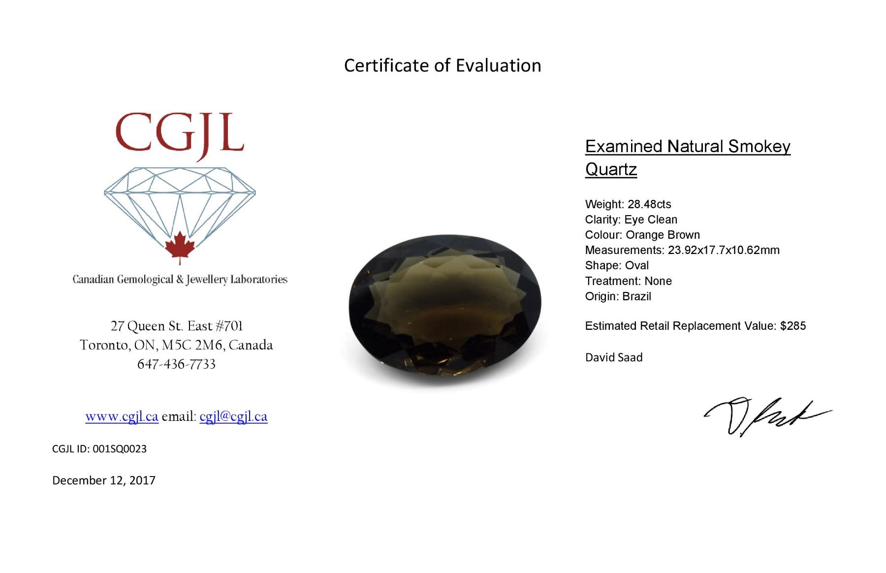 One 28.48ct Oval Smokey Quartz Gemstone.