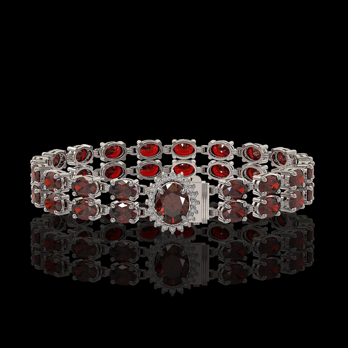 REF-218A2N - SKU: 45524 ---- 28.52 ctw Garnet & Diamond Bracelet 14K White Gold