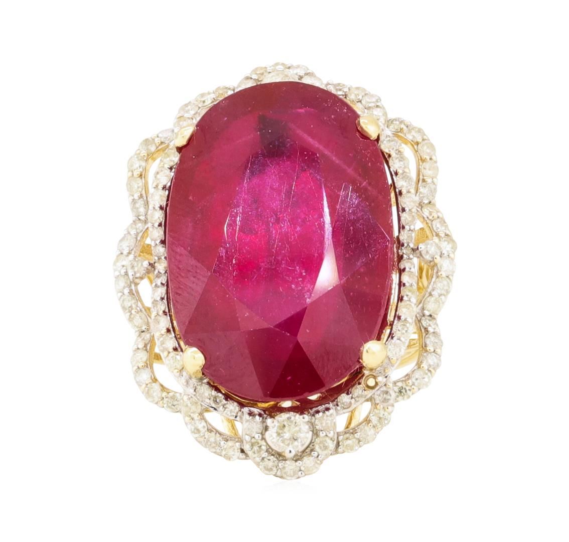 One 28.57ct Ruby and Diamond Ring - 14KT Yellow Gold. AIG certified. See Appraisal for more details. AIG Appraised.