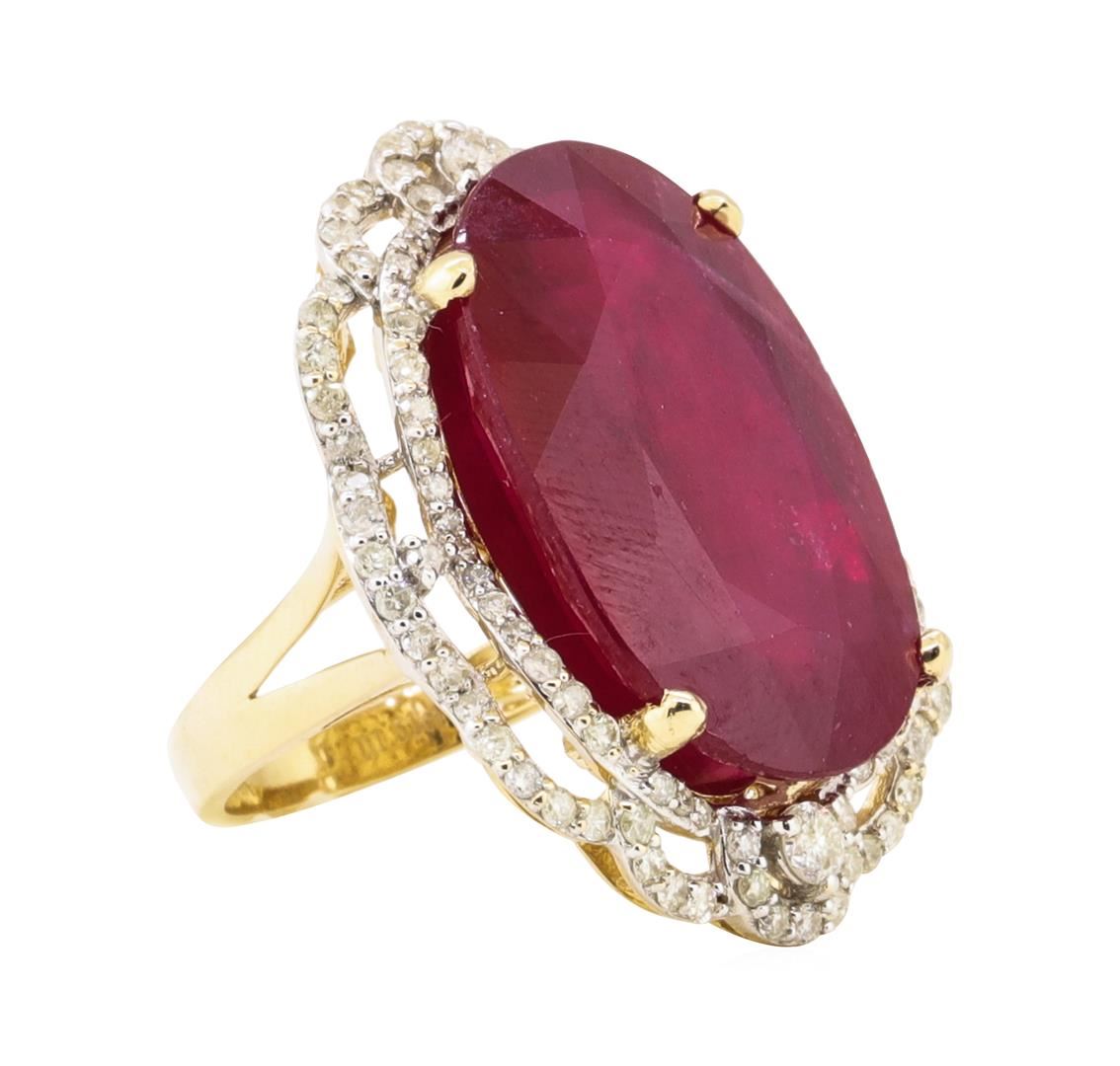 One 28.57ct Ruby and Diamond Ring - 14KT Yellow Gold. AIG certified. See Appraisal for more details. AIG Appraised.