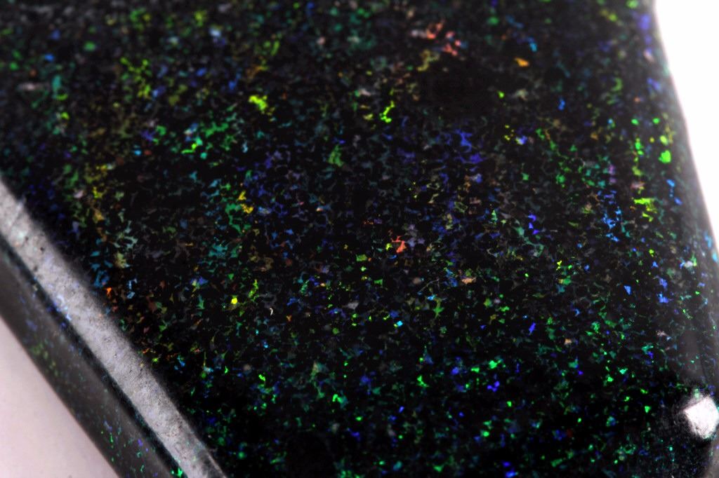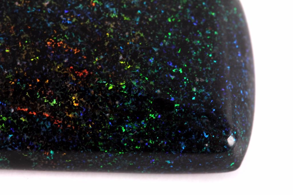 This is an Australian Fairy Sandstone Matrix Opal cabochon. The opal was mined in the Outback of Australia. The piece shows fantastic diffraction with deep rich colors of blue, green, orange and red. The opal is in good condition. Previous wholesale price for this piece was $1240. The cabochon measures 1" x 1.25" and weighs 28.5 carats.