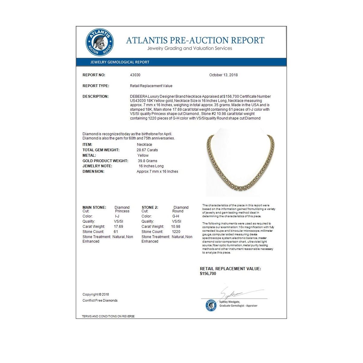 28.67 ctw Princess Diamond Necklace 18K Yellow Gold