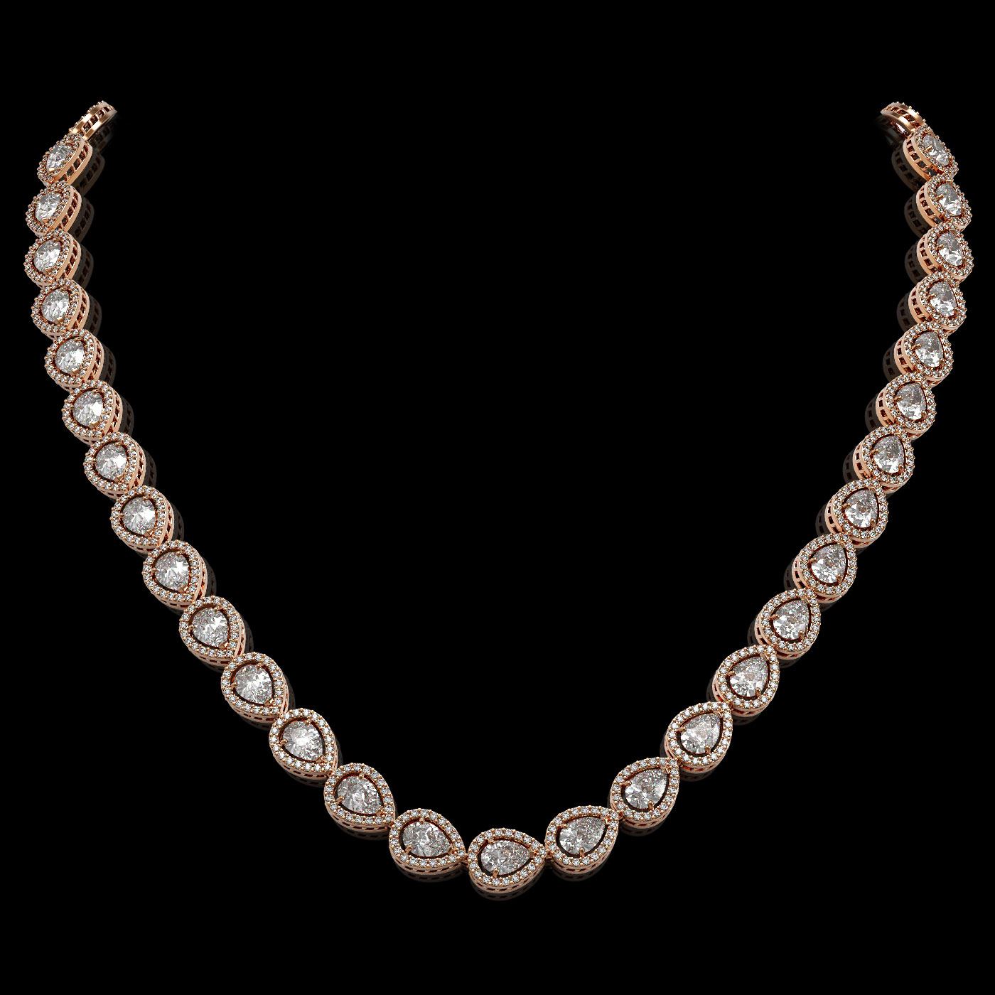 REF-5269N3Y -42642 ---- 28.74 CTW Pear Diamond Designer Necklace 18K Rose Gold ---- Luxury Designer Brand Necklace Appraised at $231,850 Certificate Number US42642 18K Rose gold, Necklace Size is 16 Inches, Necklace measuring approx. 7 mm x 16 Inches, weighing in total approx. 42 grams. Made in the USA and is stamped 18K, Main stone 22.06 carat total weight containing 44 pieces of I-J color with VS/SI quality Pear shape cut Diamond , Stone #2 6.68 carat total weight containing 836 pieces of G-H color with VS/SI quality Round shape cut Diamond