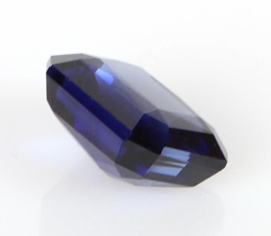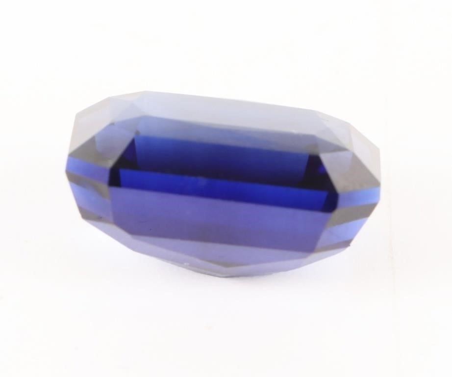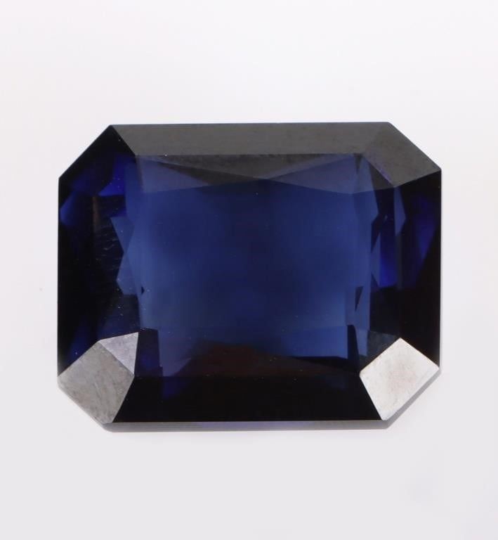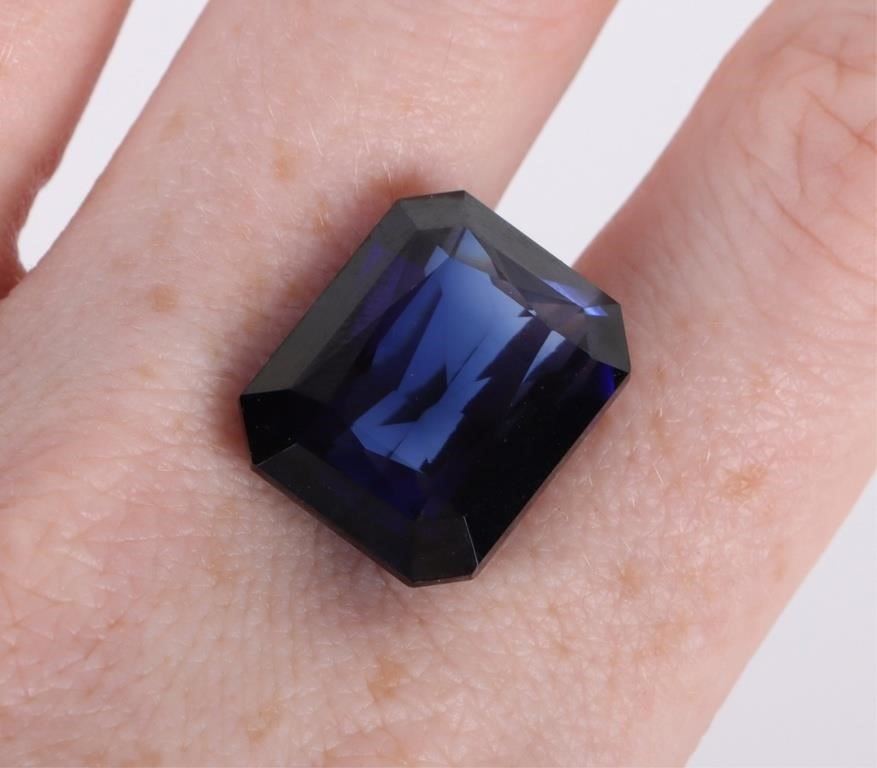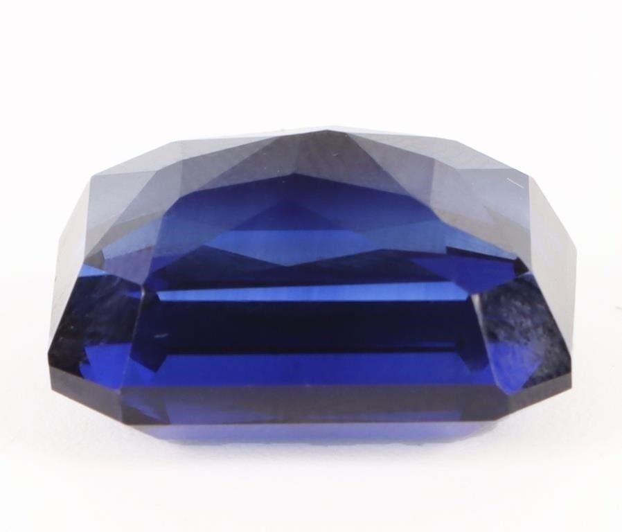 28.75ct emerald-cut blue sapphire loose gemstone. Stone has been electronically tested and identified, tester does not distinguish between lab grown and natural.