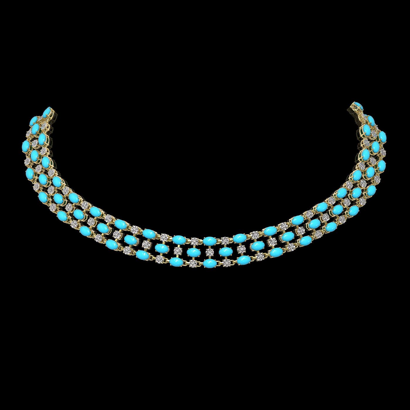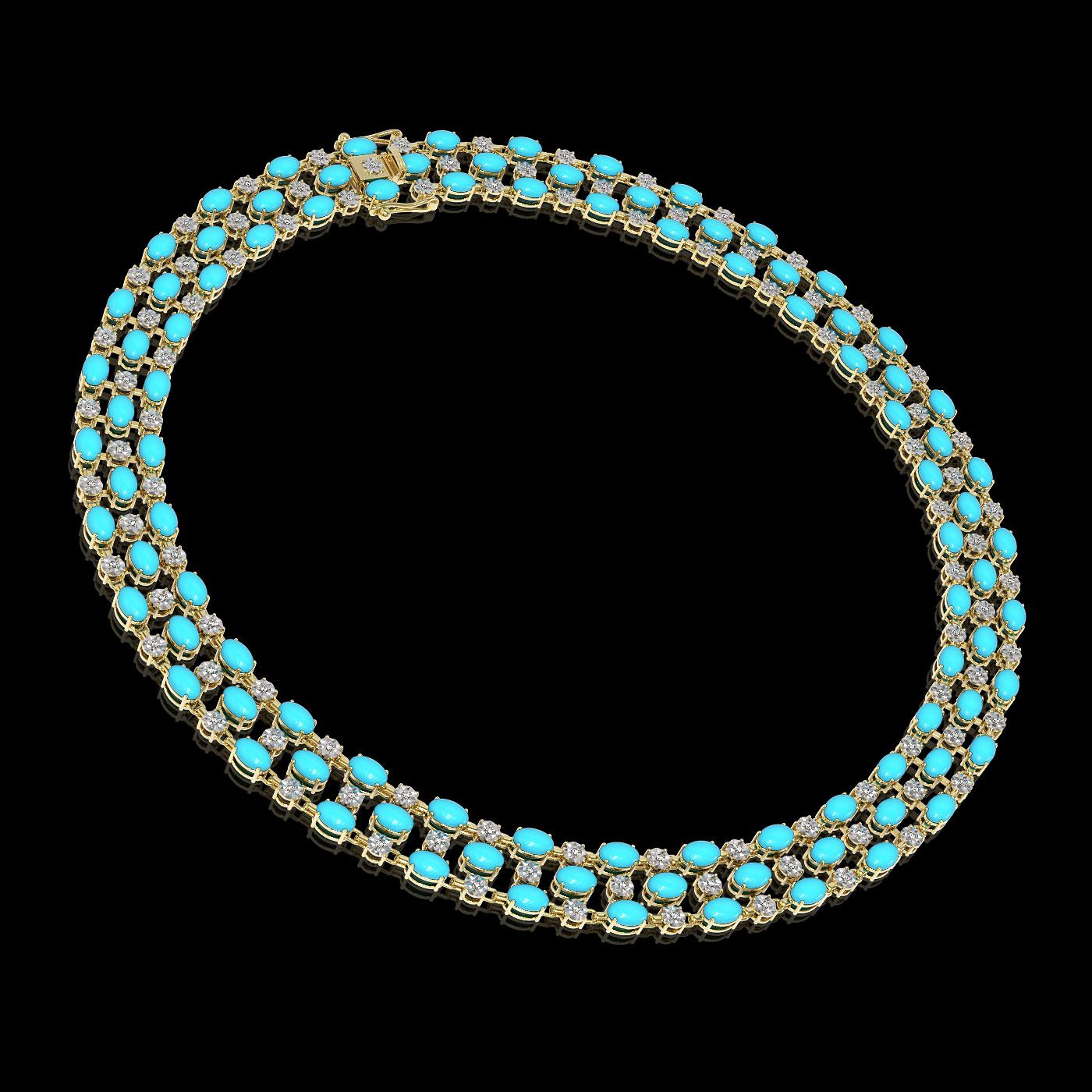 REF-427X3A - SKU: 62752 ---- 28.79 ctw Turquoise & Diamond Necklace 10K Yellow Gold