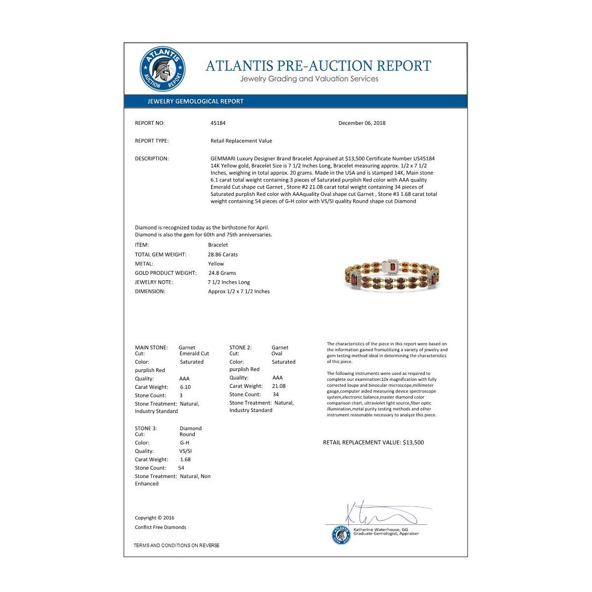28.86 ctw Garnet & Diamond Bracelet 14K Yellow Gold