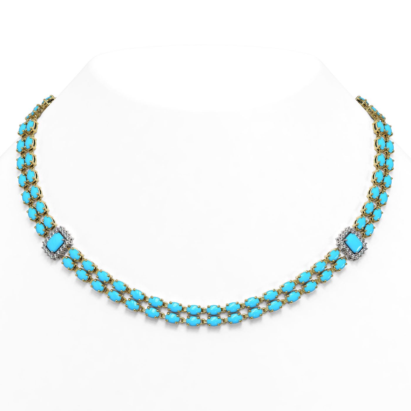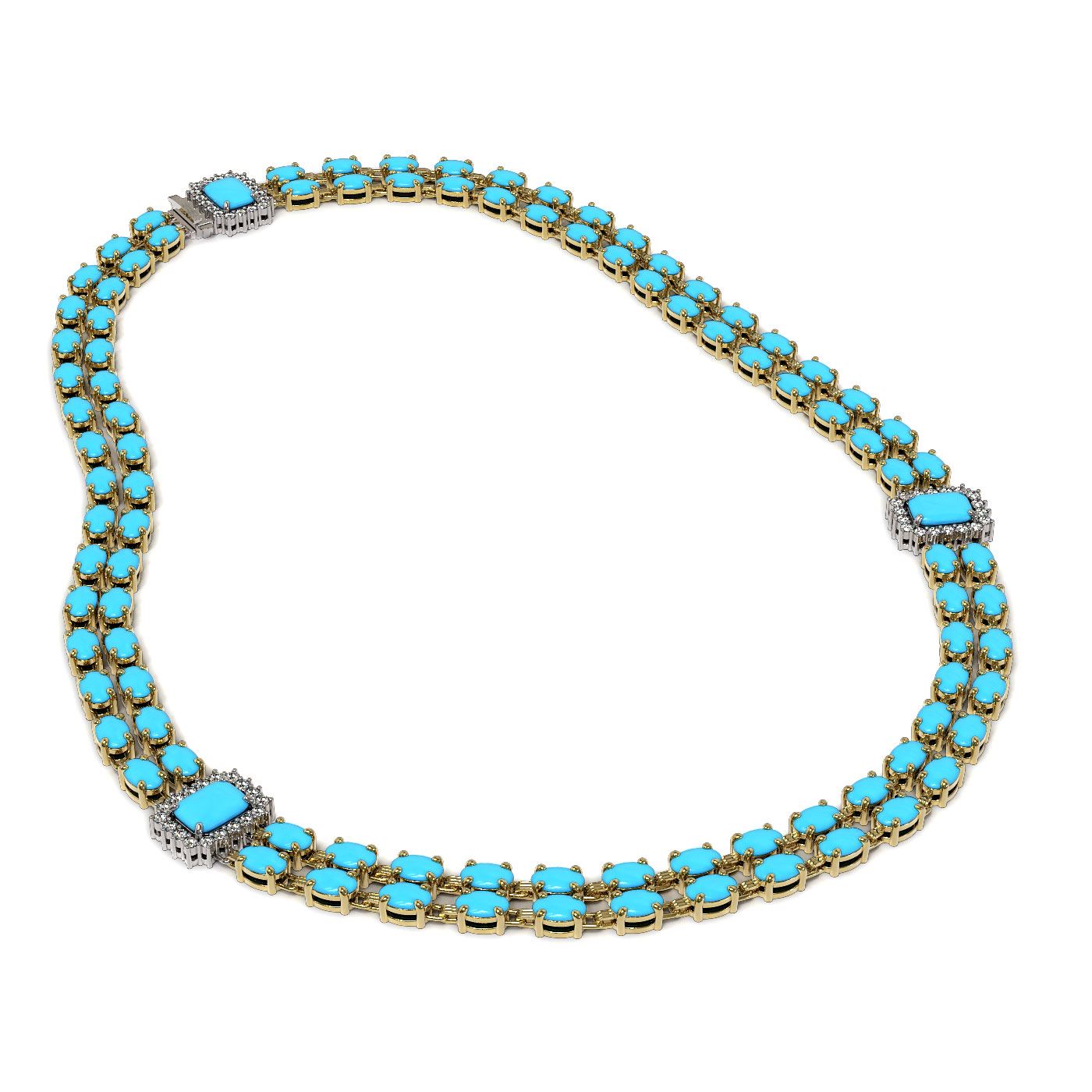 REF-436A4N - SKU: 45019 ---- 28.86 ctw Turquoise & Diamond Necklace 14K Yellow Gold
