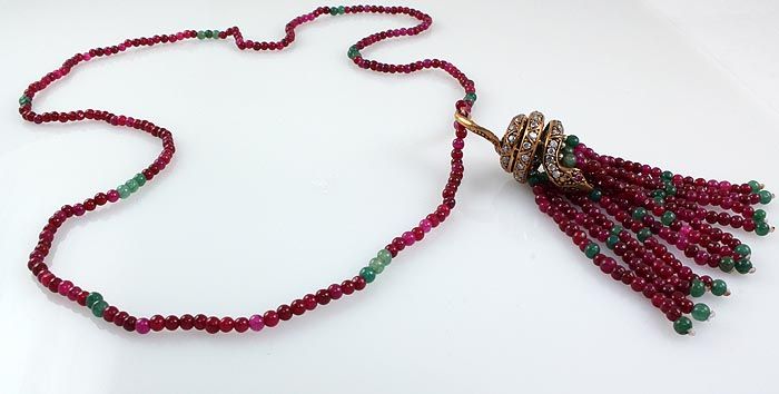 28.98GRAMS SILVER VICTORIAN NECKLACE **|**|** 26 INCHES LONG SNAKE VICTORIAN NECKLACE WITH RED & GREEN BEADS ; MSRP: $500