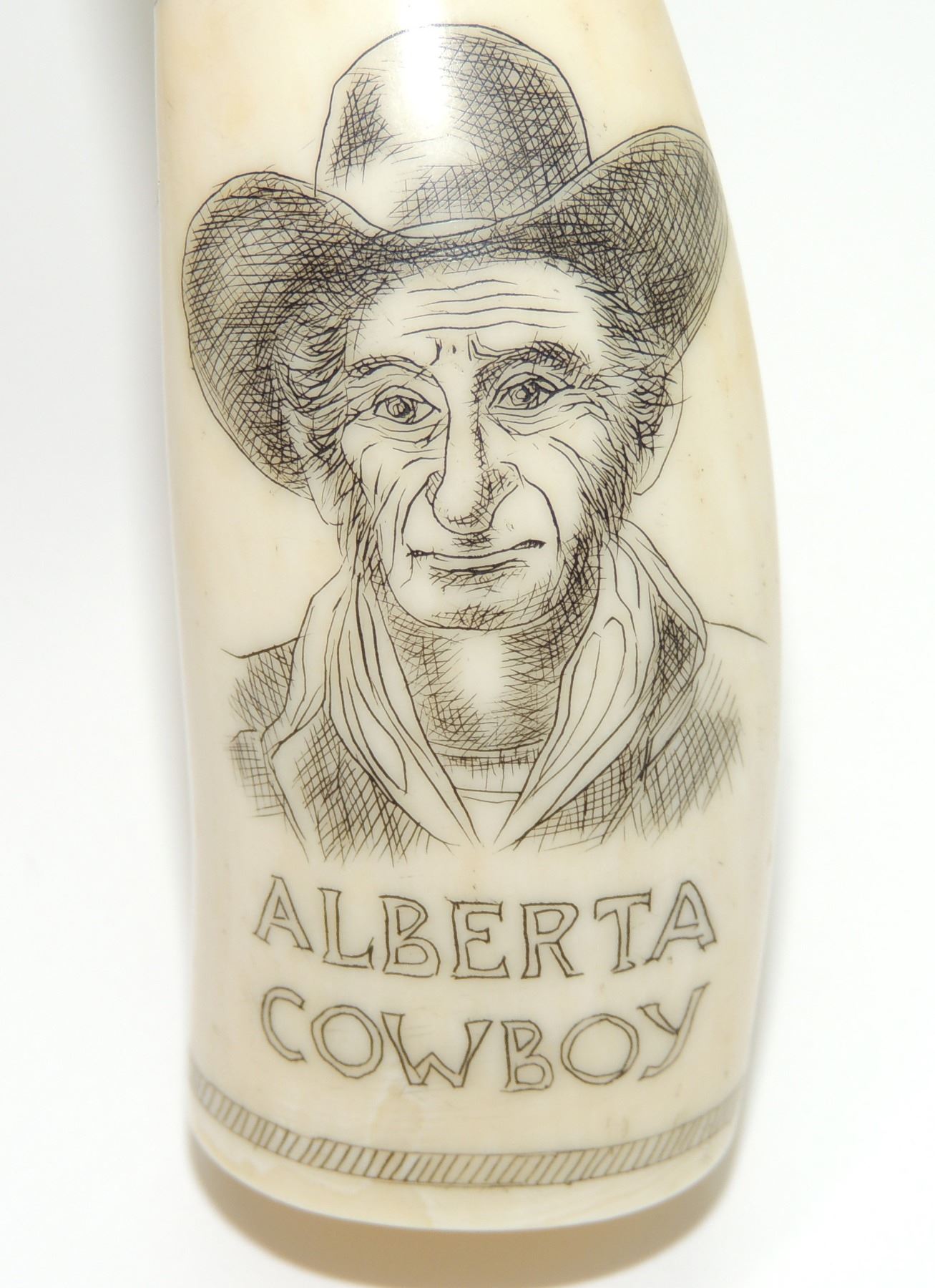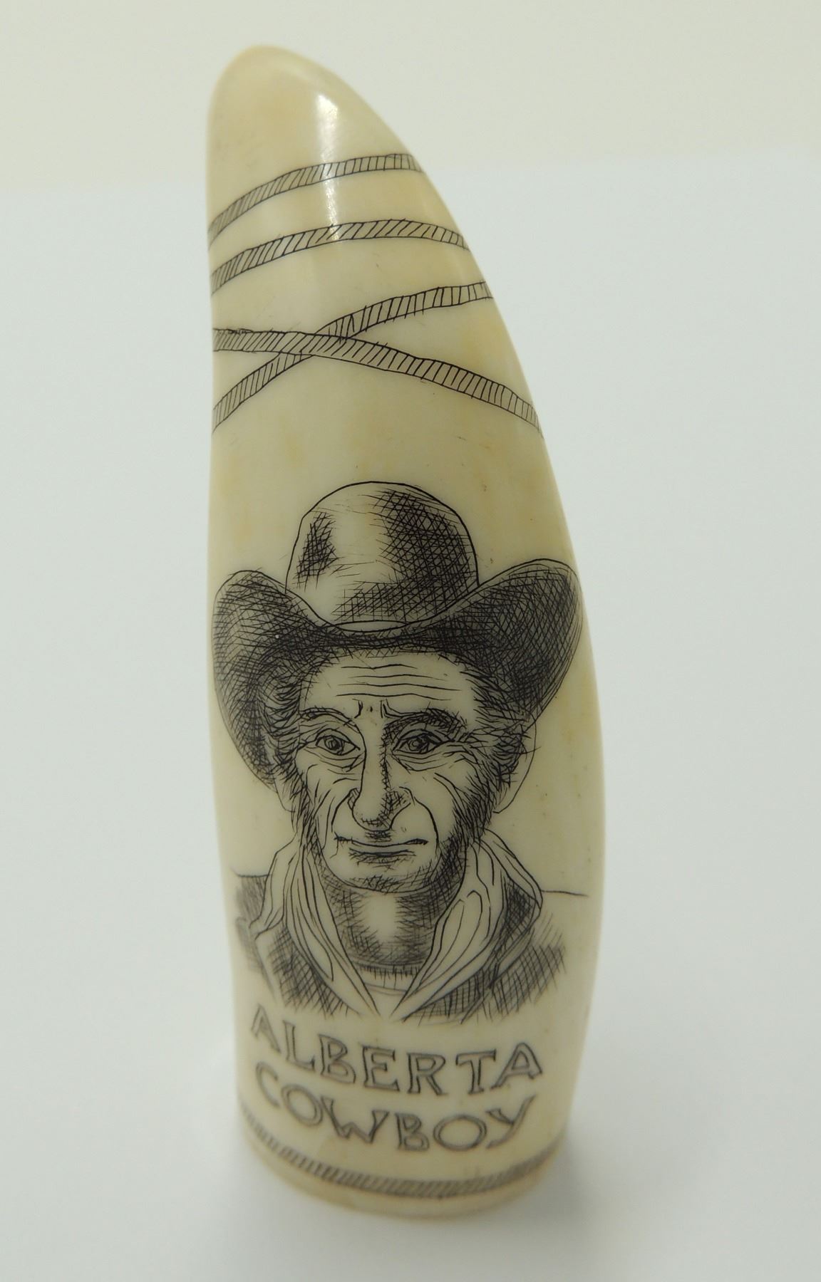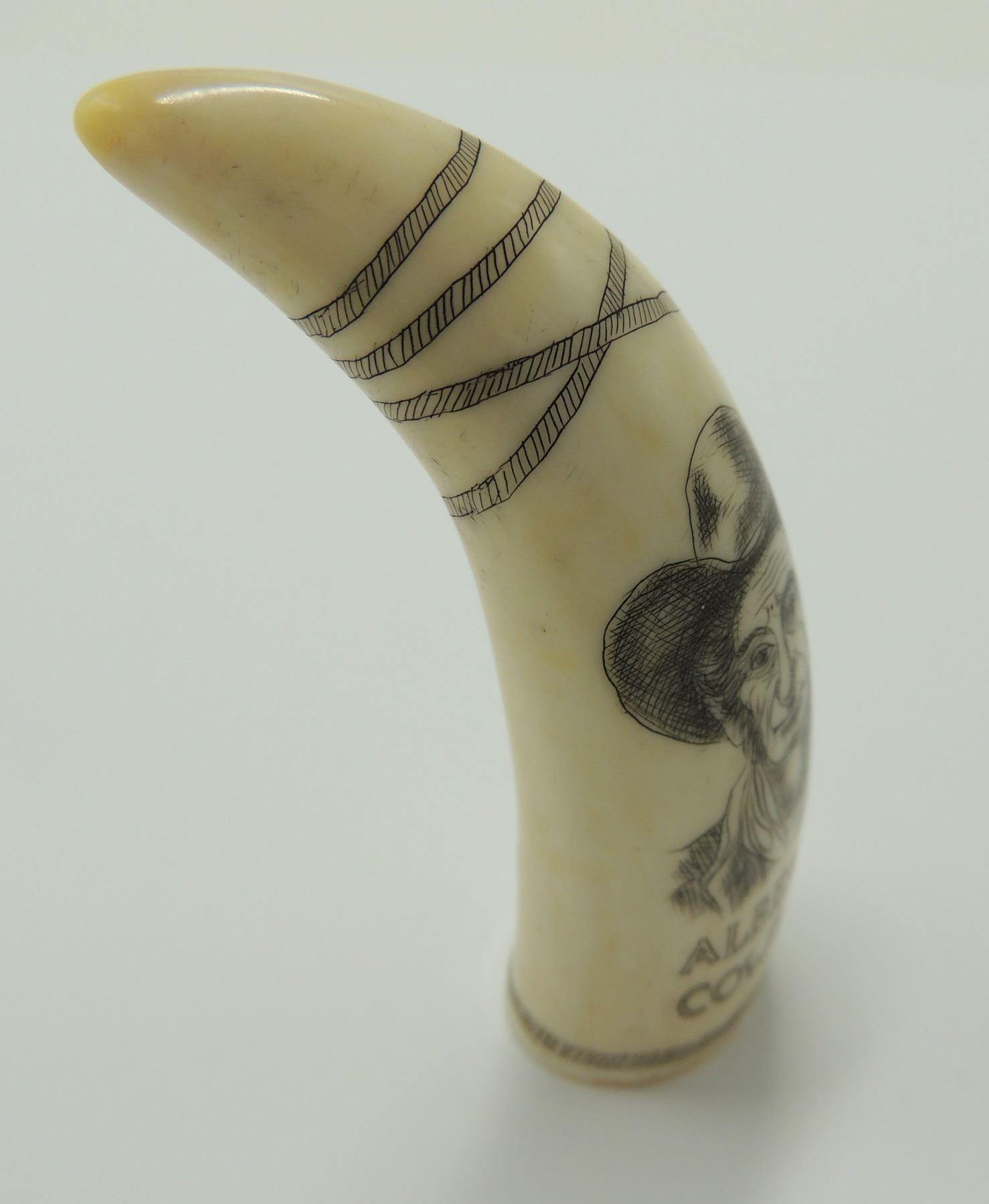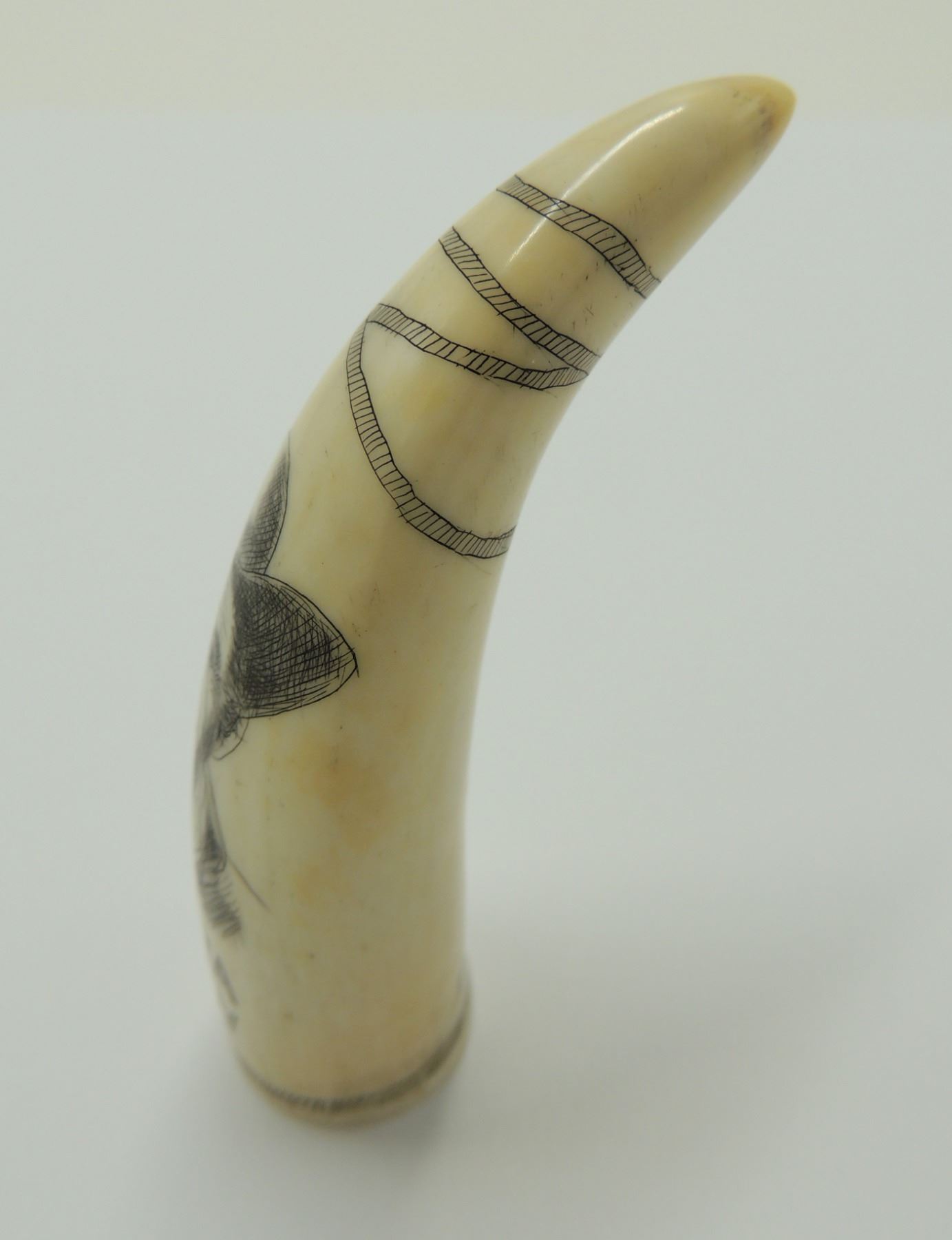 BONE IVORY WHALES TOOTH SIGNED BY FRANK POLANSKY 1990 ON REVERSE WITH CARD