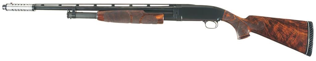 Manufactured in 1950. Barrel shortened with Simmons rib and Cutts Compensator installed, 2 7/8" chamber and a 14 1/8" LOP. Rear of receiver stamped "28".