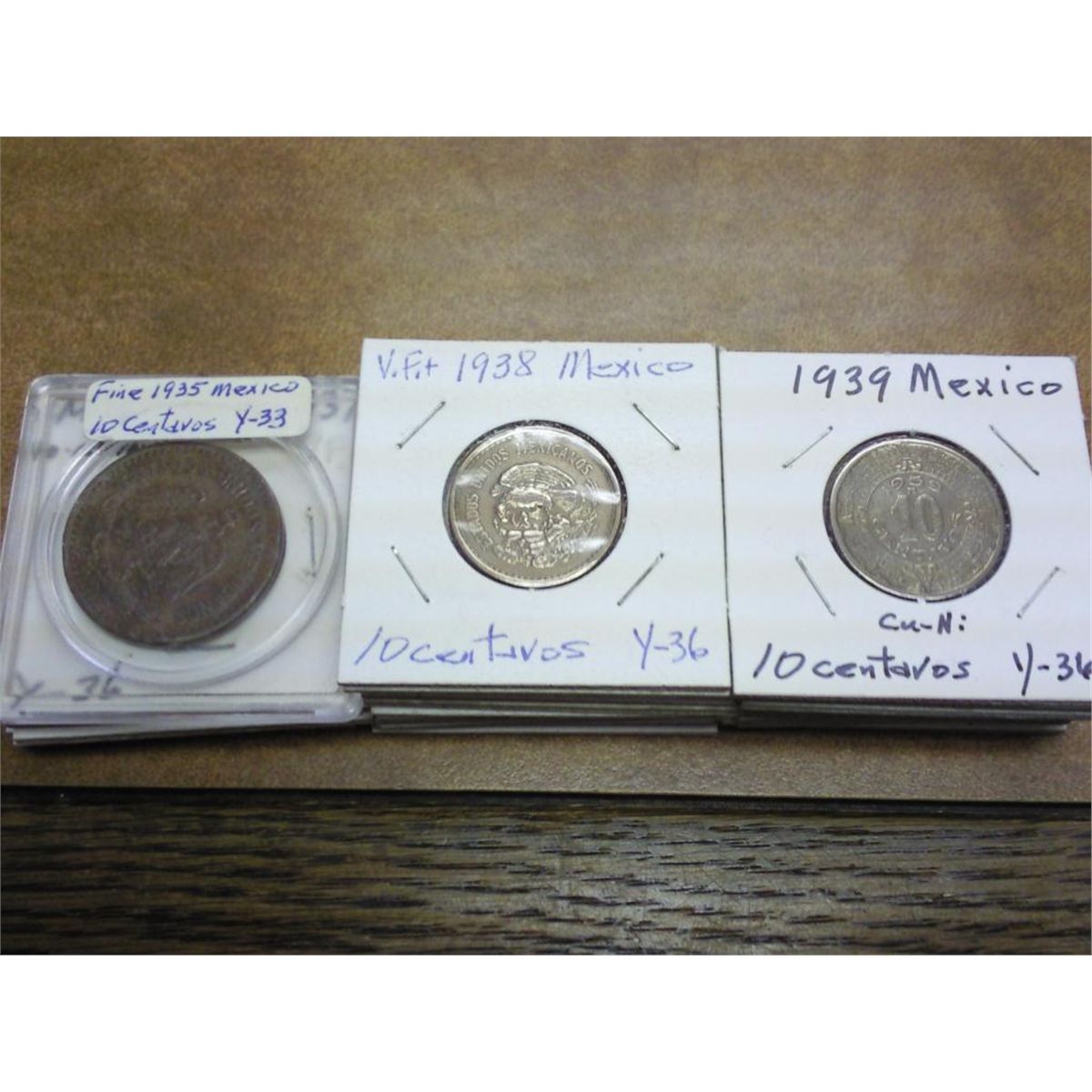 28-MEXICO 10 CENTAVOS 1-1935, 5-1937, 11-1938,