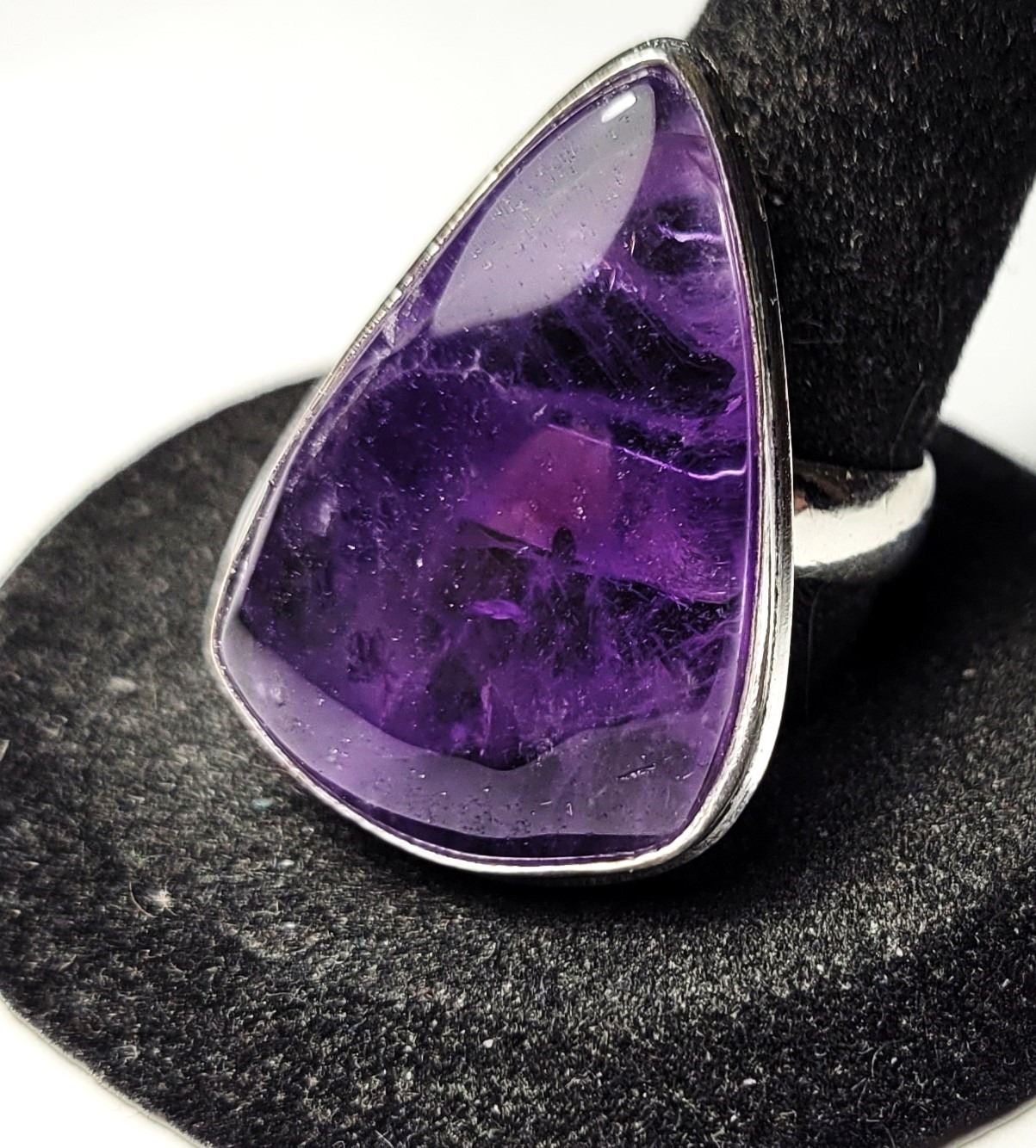 28) NATURAL PEAR SHAPED AMETHYST SIZE 8.25 RING,