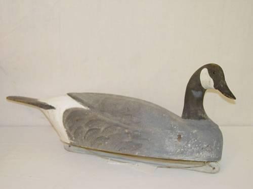 28" PAINTED CORK & WOODEN GOOSE DECOY - LOSSES & PAINT WEAR;