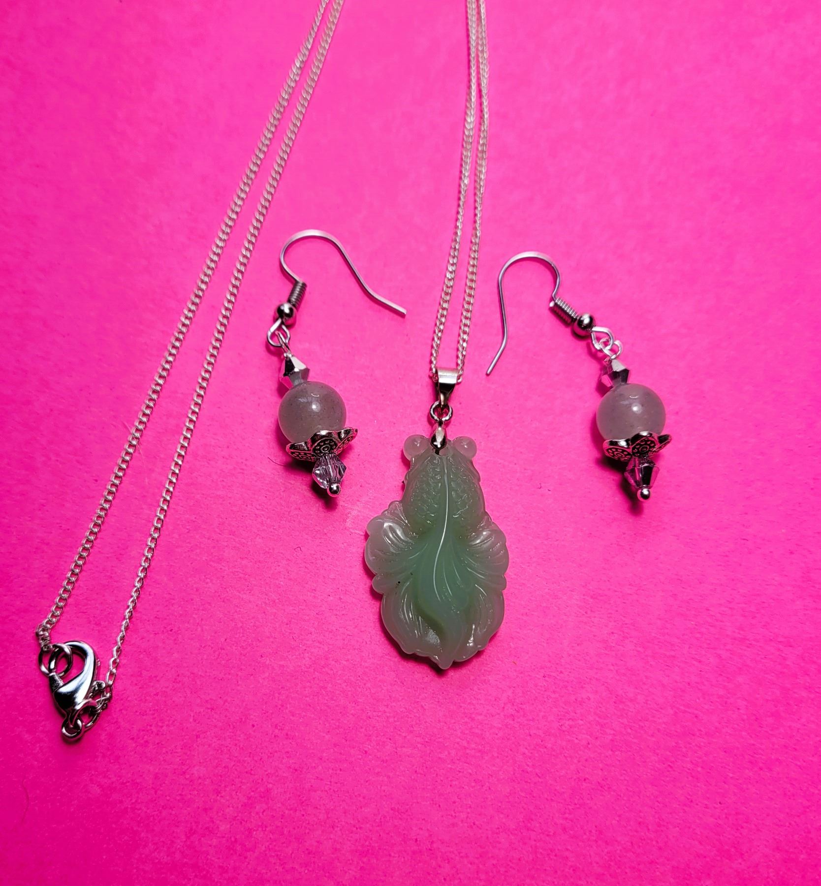 KOI GOLDFISH PENDANT ON 18" CHAIN AND MATCHING DROP EARRINGS ON NICKLE FREE FISH HOOK WIRES. JEWELLERY