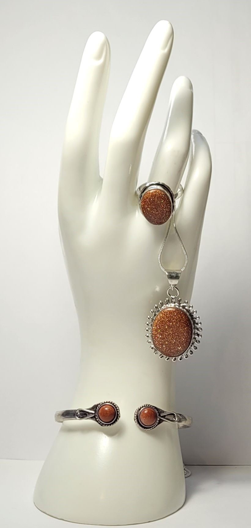 RING STAMPED 925, PENDANT ON 18" CHAIN & BRACELET WITH STONES ON EACH END. JEWELERY