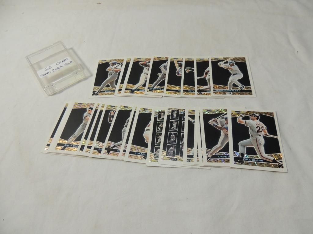 28 CARDS TOPPS BLACK GOLD BASEBALL CARDS. TRADING CARDS. COLLECTIBLE. SPORTS MEMORABILA. GOOD CONDITION. AS SHOWN. SEE PHOTO FOR MORE DETAILS.