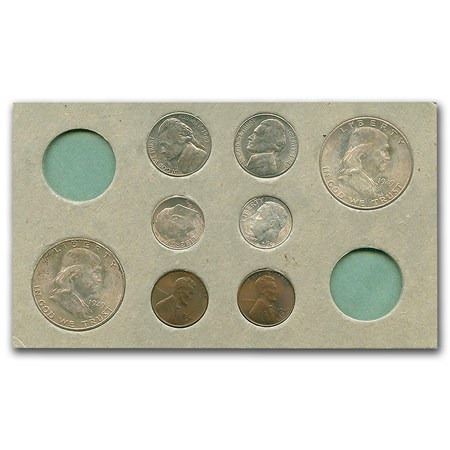 his rare 28-piece Double Mint Set contains two examples of each U.S. coin from 1949, housed in original mint packaging. All coins show characteristic mint-set toning. Stock images - 100% authentic