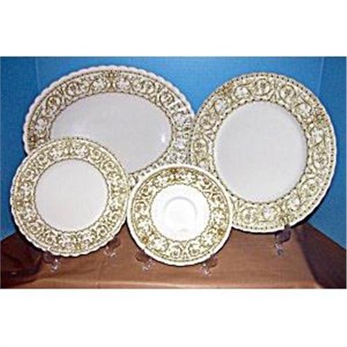 Acquired as part of an estate lot these J & G Meakin dinnerware pieces are as is... which overall is good to very good. There are a couple of chips and one dinner plate has a crack in the top center of the surface glaze (it does not go through). The pattern is all green and quite beautiful but we have been unable to come up with the pattern name for you. There is a platter, open vegetable bowl, 5 dinner plates, 7 saucers, 7 salad plates and 7 bowls. We have also put the 1 cup that came with the set, but have not counted it as it is cracked in the bottom and is very badly stained. If you find three items that can be shipped in one container and pay with PayPal, you qualify for FREE shipping of your entire order...