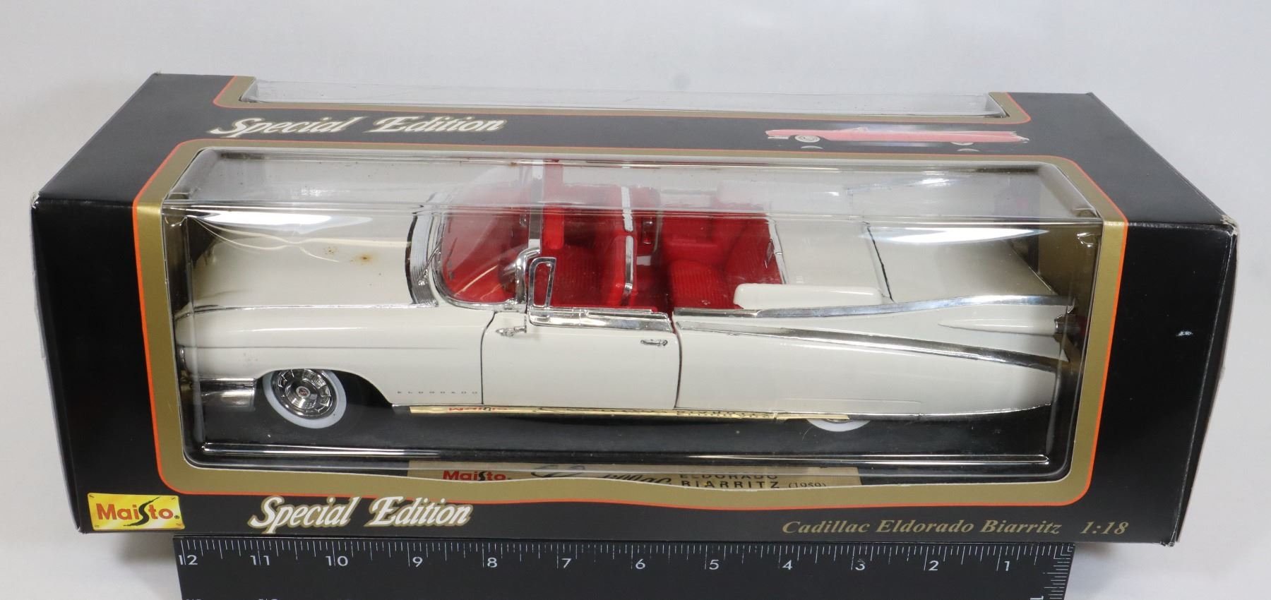 CADILLAC ELDORADO WHITE CONVERTIBLE 1994 MAISTO DIECAST TOY CAR BOXED NEW OLD STOCK NOS--FROM BUYOUT OF 1980'S BRITISH TOY STORE, INCLUDING MODEL KITS, DIECAST METAL CARS & VEHICLES, TRAINS, VINTAGE AND INTERNATIONAL COLLECTABLES INCLUDING LATER 1990'S TOYS AND EARLY 1960'S TOYS AND MORE