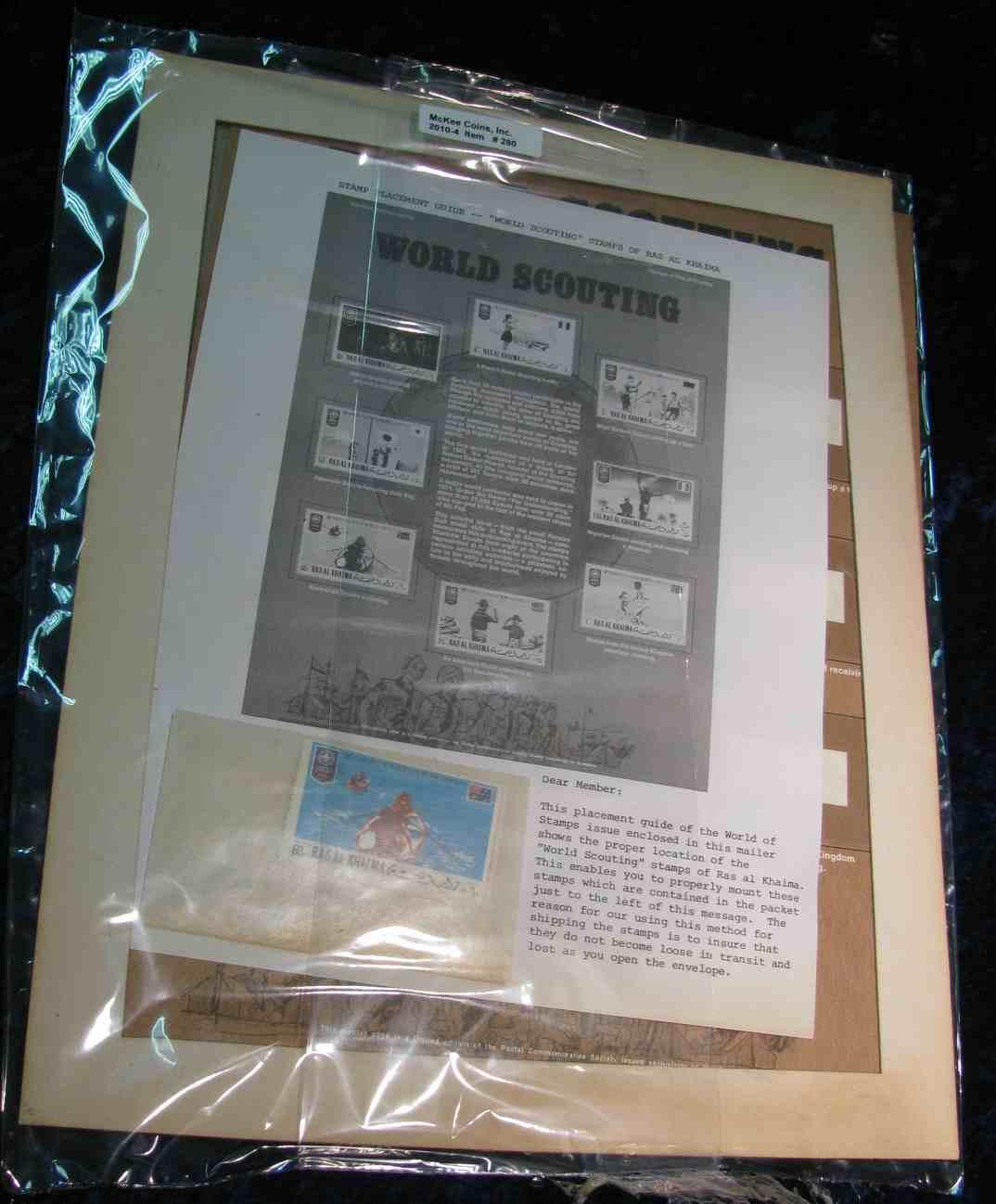 280. Collection of "World Scouting" Stamps of Ras Al Khaima" complete with Placement guide.