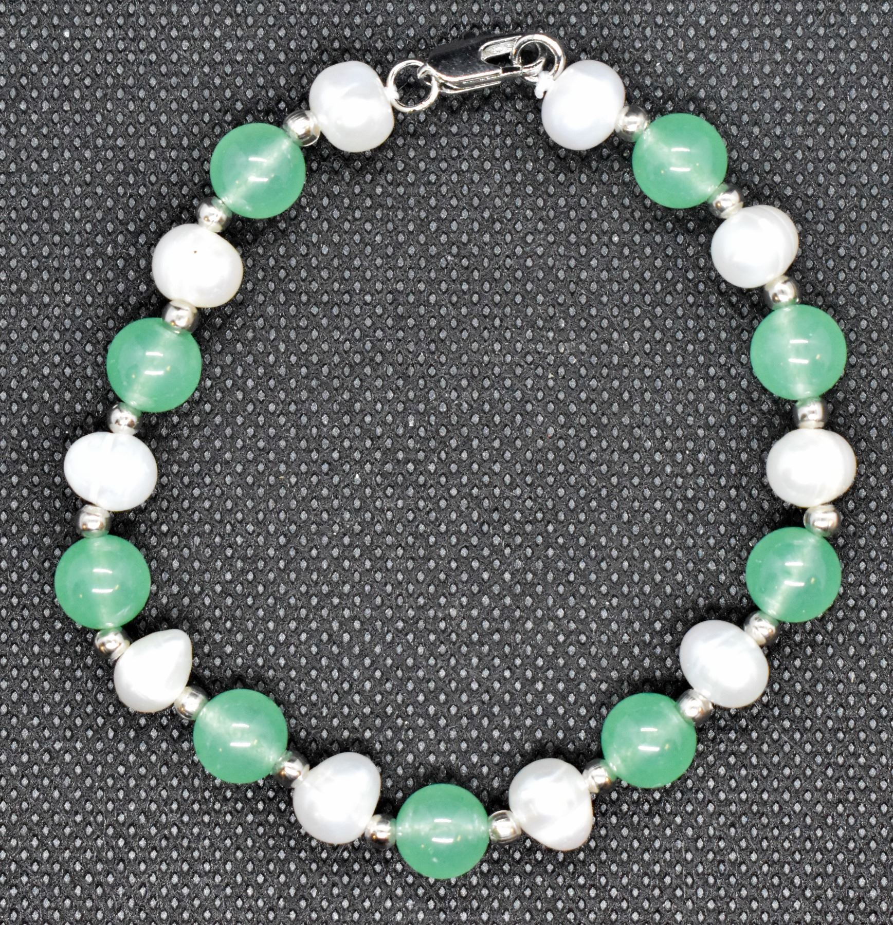 #280-FRESH WATER PEARL &  GREEN JADE BRACELET