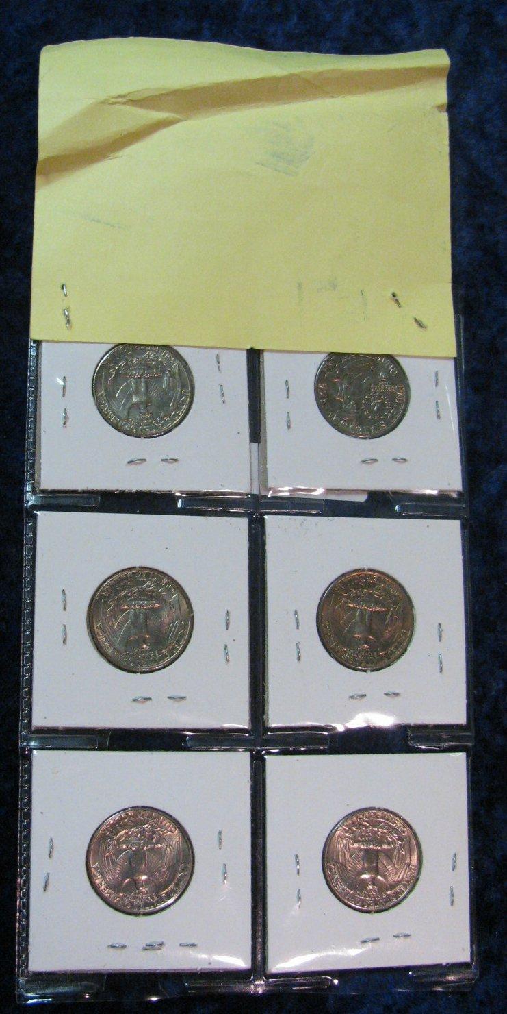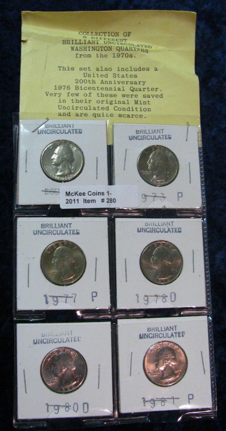 280. Page of 6 carded Gem BU Quarters 1973-81P.