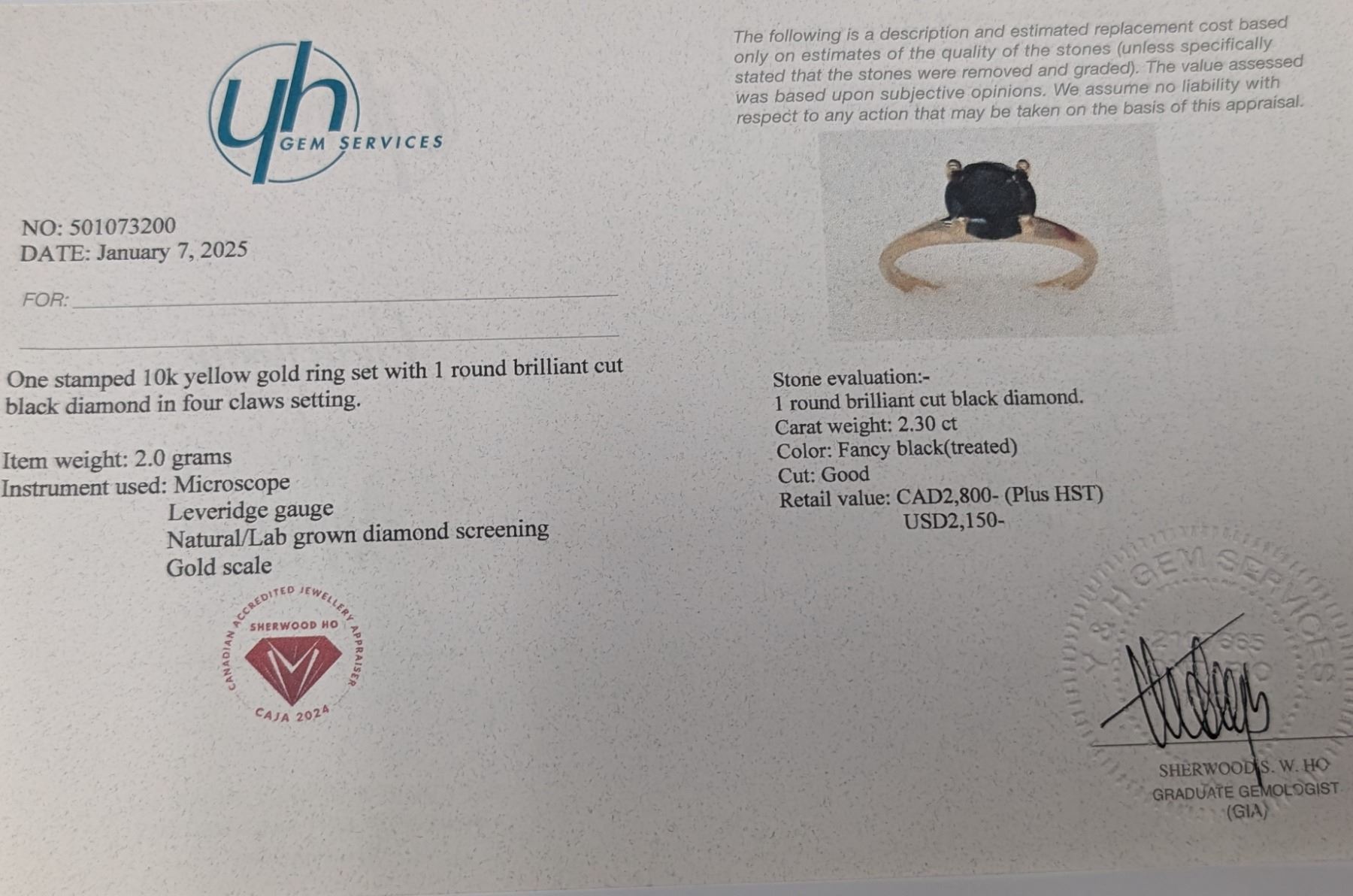 $2800, 10K(2g), BALCK DIAMOND (2.3ct)RING, size 5.5, appraised/retail value $2800, ring resizeable for $50