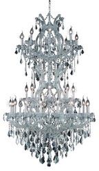2800 Maria Theresa Collection Large Hanging Fixture D36in H56in Lt:32+2 Chrome Finish (Royal Cut Crystals) Watts:Lumens:Lamp Type:Shape:Style:TransitionalLight Bulbs:34Bulb Type:E12Bulb Wattage:40Max Wattage:1360Voltage:110V-125VFinish:ChromeCrystal Trim:Royal CutCrystal Color:Crystal (Clear)Hanging Weight:126Case Pack: 1