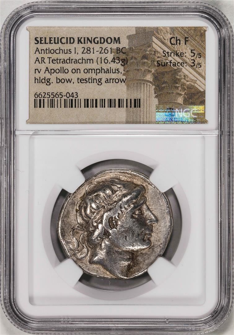 281-261 BC Seleucid Kingdom Antiochus I AR Tetradrachm Ancient Coin NGC Ch F