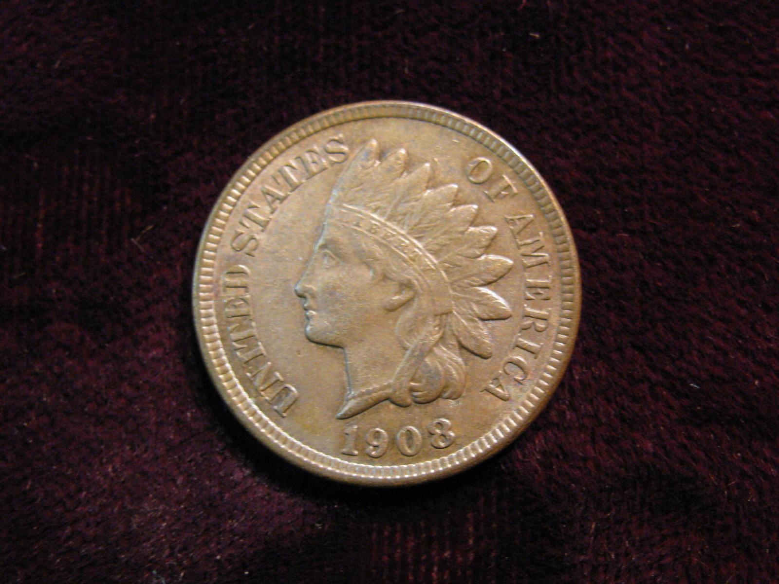2815. 1908 U.S. Indian Head Type Cent, Very Choice Uncirculated Coin With Brown/Red Color.