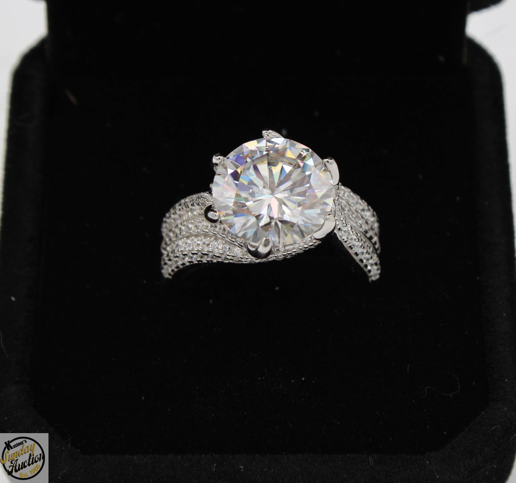 CUT MOISSANITE STONE VVS D COLOR SET WITH 130 ROUND BRILLIANT CUT CZ?S SET IN 925 SILVER RING SIZE 7 RETAIL VALUE $1,475.00 **ALL ITEMS MUST BE REMOVED BY 5PM SATURDAY, JULY 5TH 2025. ALL REMAINING ITEMS WILL BE SUBJECT TO A $6.00 PER DAY STORAGE CHARGE. ANY ITEMS REMAINING AFTER MONDAY, JULY 21ST 2025 WILL BE CONSIDERED FORFEITED. NO REFUNDS WILL BE ISSUED FOR FORFEITED ITEMS. TO SCHEDULE A PICK UP APPOINTMENT CLICK HERE