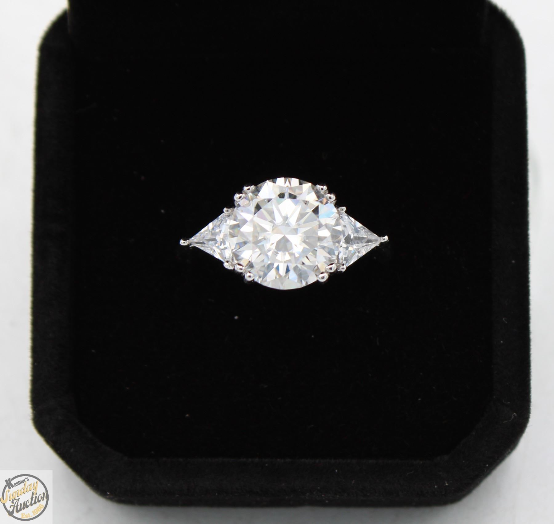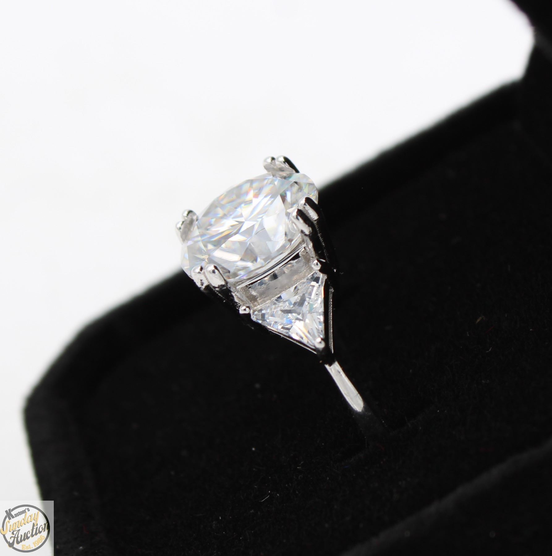 CUT MOISSANITE STONE VVS D COLOR SET WITH A TRIANGULAR BRILLIANT CUT CUBIC ZIRCONIA SET IN 925 SILVER RING SIZE 9 RETAIL VALUE $1,425.00 **ALL ITEMS MUST BE REMOVED BY 5PM SATURDAY, JULY 26th 2025. ALL REMAINING ITEMS WILL BE SUBJECT TO A $6.00 PER DAY STORAGE CHARGE. ANY ITEMS REMAINING AFTER MONDAY, AUGUST 11TH 2025 WILL BE CONSIDERED FORFEITED. NO REFUNDS WILL BE ISSUED FOR FORFEITED ITEMS. TO SCHEDULE A PICK UP APPOINTMENT CLICK HERE