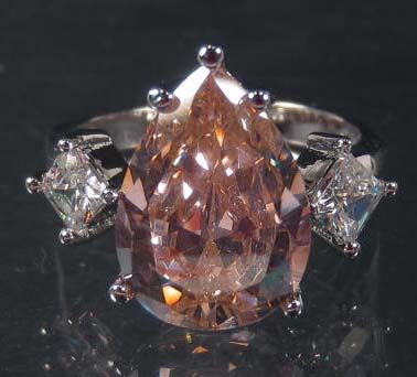 2823 - 14K WHITE GOLD PLATED RING W/ PINK SAPPHIRE & WHITE TOPAZ - SIZE 8