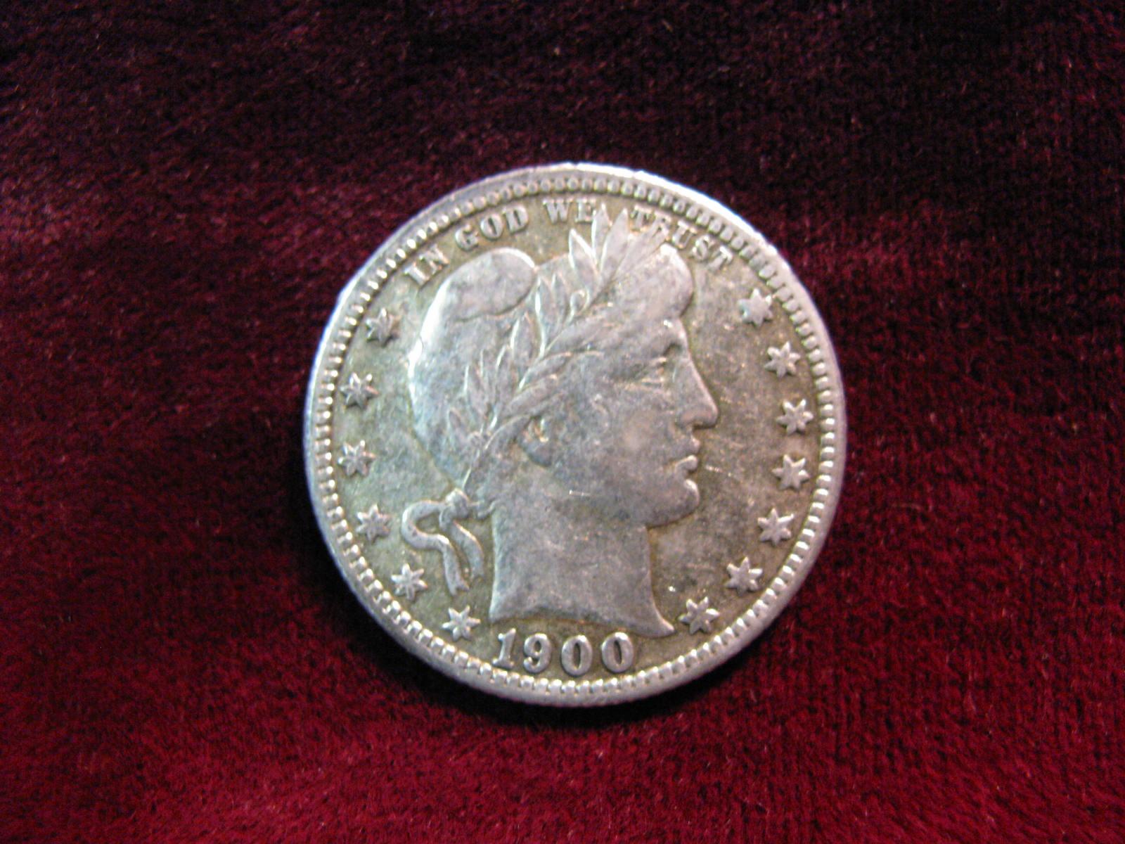 2824. 1900 S U.S. Barber Type Quarter. AU, Solder On Reverse Near Rim