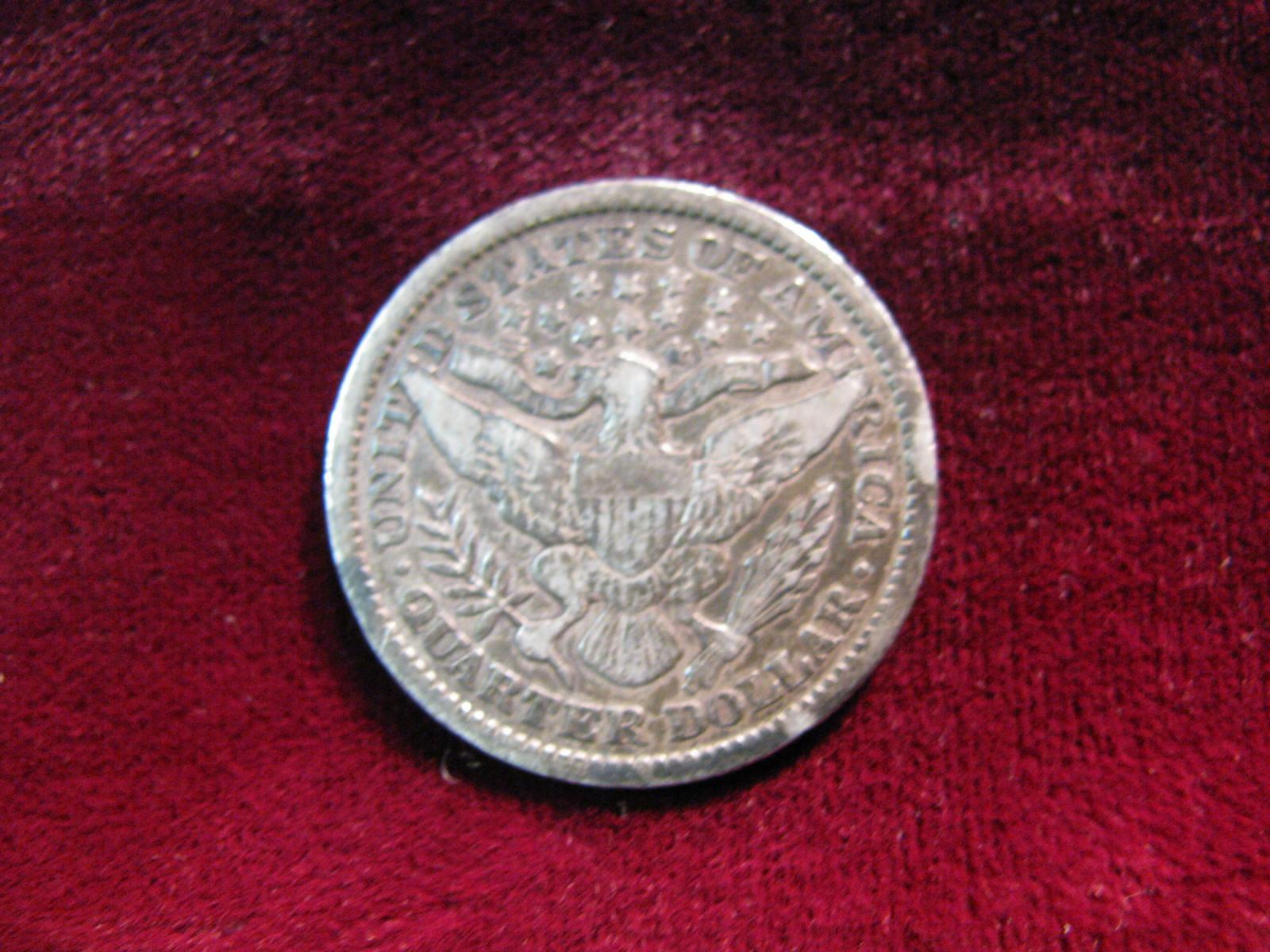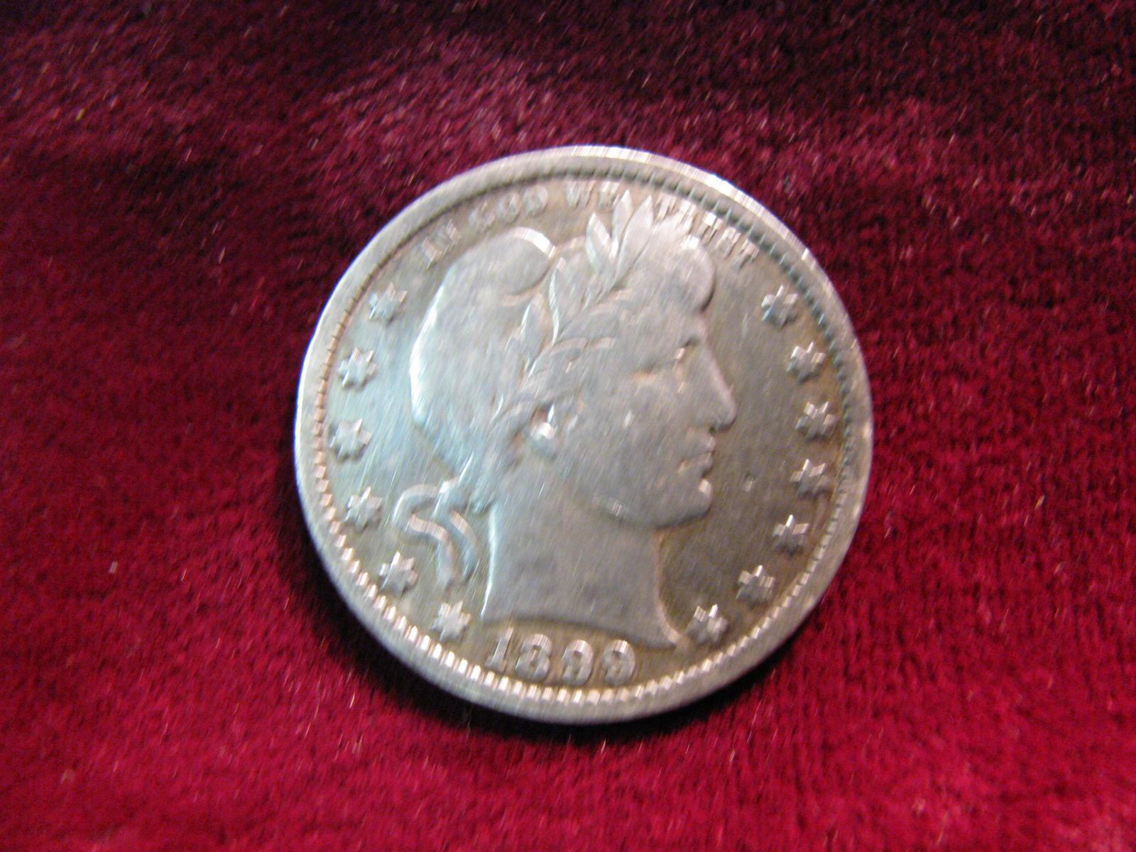 2827. 1899 U.S. Barber Type Silver Quarter. F/VF With Small Planchet Defect Hole In Field.