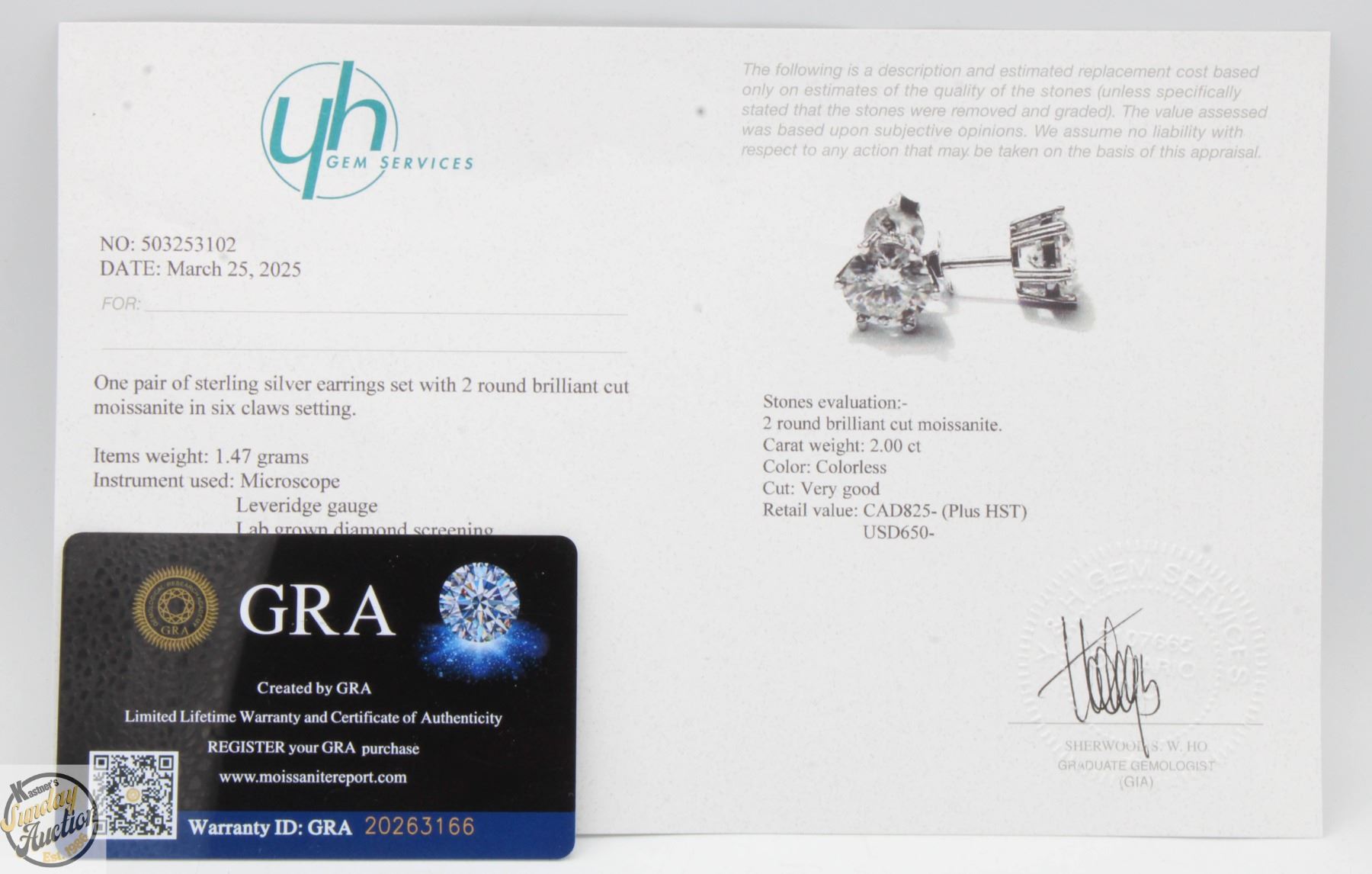 CUT MOISSANITE STONES VVS D COLOR SET IN 6 CLAW BASKET HEAD SET IN 925 SILVER EARRINGS RETAIL VALUE $825.00 **ALL ITEMS MUST BE REMOVED BY 5PM SATURDAY, JULY 5TH 2025. ALL REMAINING ITEMS WILL BE SUBJECT TO A $6.00 PER DAY STORAGE CHARGE. ANY ITEMS REMAINING AFTER MONDAY, JULY 21ST 2025 WILL BE CONSIDERED FORFEITED. NO REFUNDS WILL BE ISSUED FOR FORFEITED ITEMS. TO SCHEDULE A PICK UP APPOINTMENT CLICK HERE