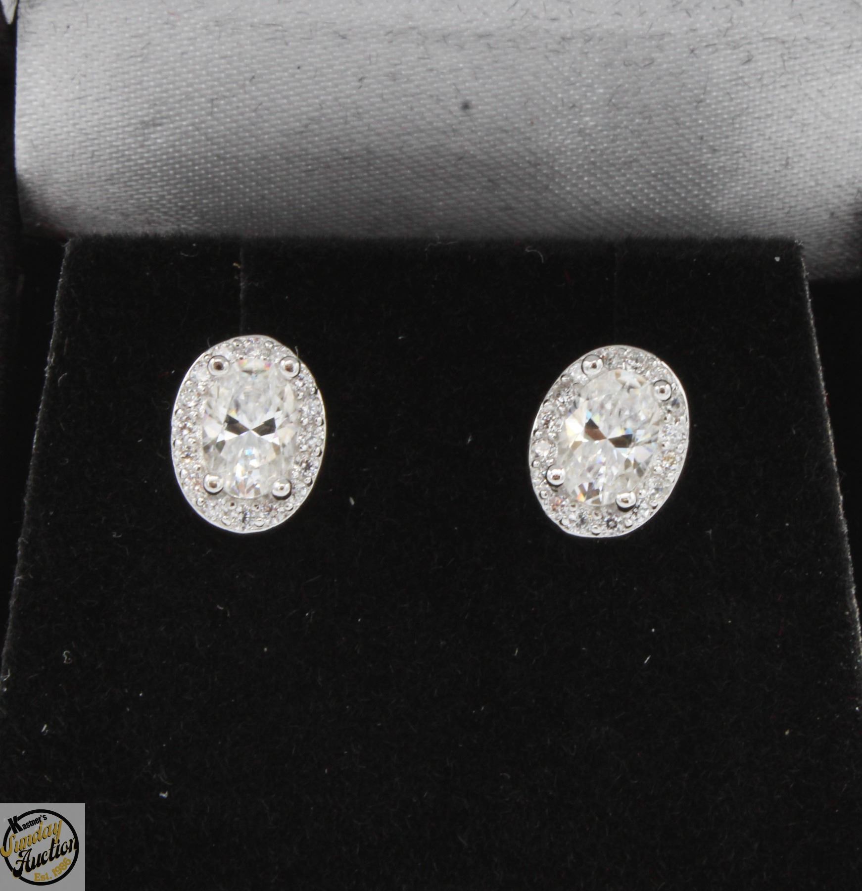 CUT MOISSANITE STONE VVS D COLOR WITH 48 ROUND BRILLIANT CUT CUBIC ZIRCONIA SET IN SQUARE HALO SET IN 925 SILVER EARRING RETAIL VALUE $950.00 **ALL ITEMS MUST BE REMOVED BY 5PM SATURDAY, JULY 5TH 2025. ALL REMAINING ITEMS WILL BE SUBJECT TO A $6.00 PER DAY STORAGE CHARGE. ANY ITEMS REMAINING AFTER MONDAY, JULY 21ST 2025 WILL BE CONSIDERED FORFEITED. NO REFUNDS WILL BE ISSUED FOR FORFEITED ITEMS. TO SCHEDULE A PICK UP APPOINTMENT CLICK HERE