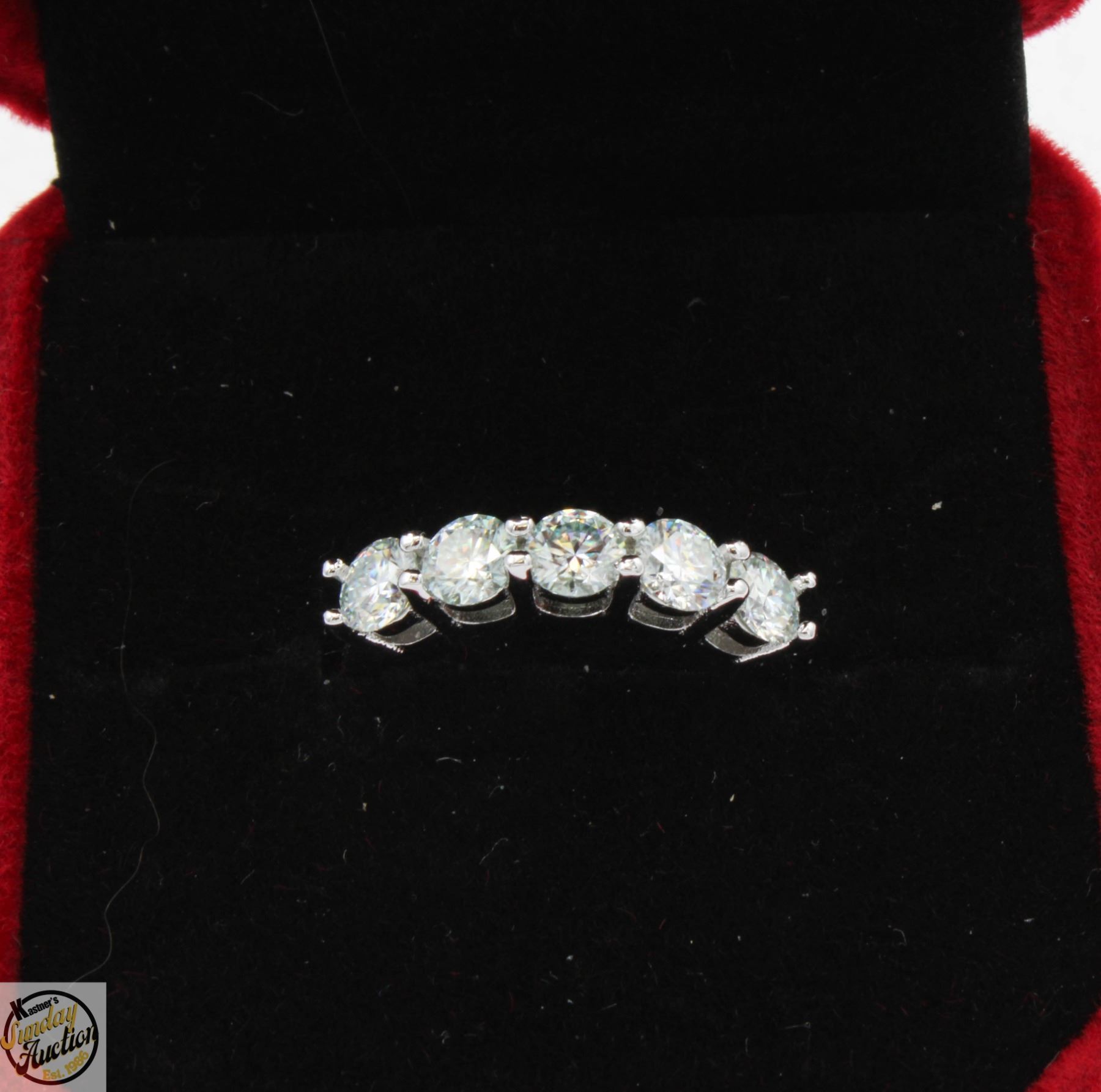 STONES VVS D COLOR WITH THE 5 MOISSANITE STONES SET ON TOP SET IN 925 SILVER RING SIZE 5 RETAIL VALUE $675.00 **ALL ITEMS MUST BE REMOVED BY 5PM SATURDAY, JULY 5TH 2025. ALL REMAINING ITEMS WILL BE SUBJECT TO A $6.00 PER DAY STORAGE CHARGE. ANY ITEMS REMAINING AFTER MONDAY, JULY 21ST 2025 WILL BE CONSIDERED FORFEITED. NO REFUNDS WILL BE ISSUED FOR FORFEITED ITEMS. TO SCHEDULE A PICK UP APPOINTMENT CLICK HERE