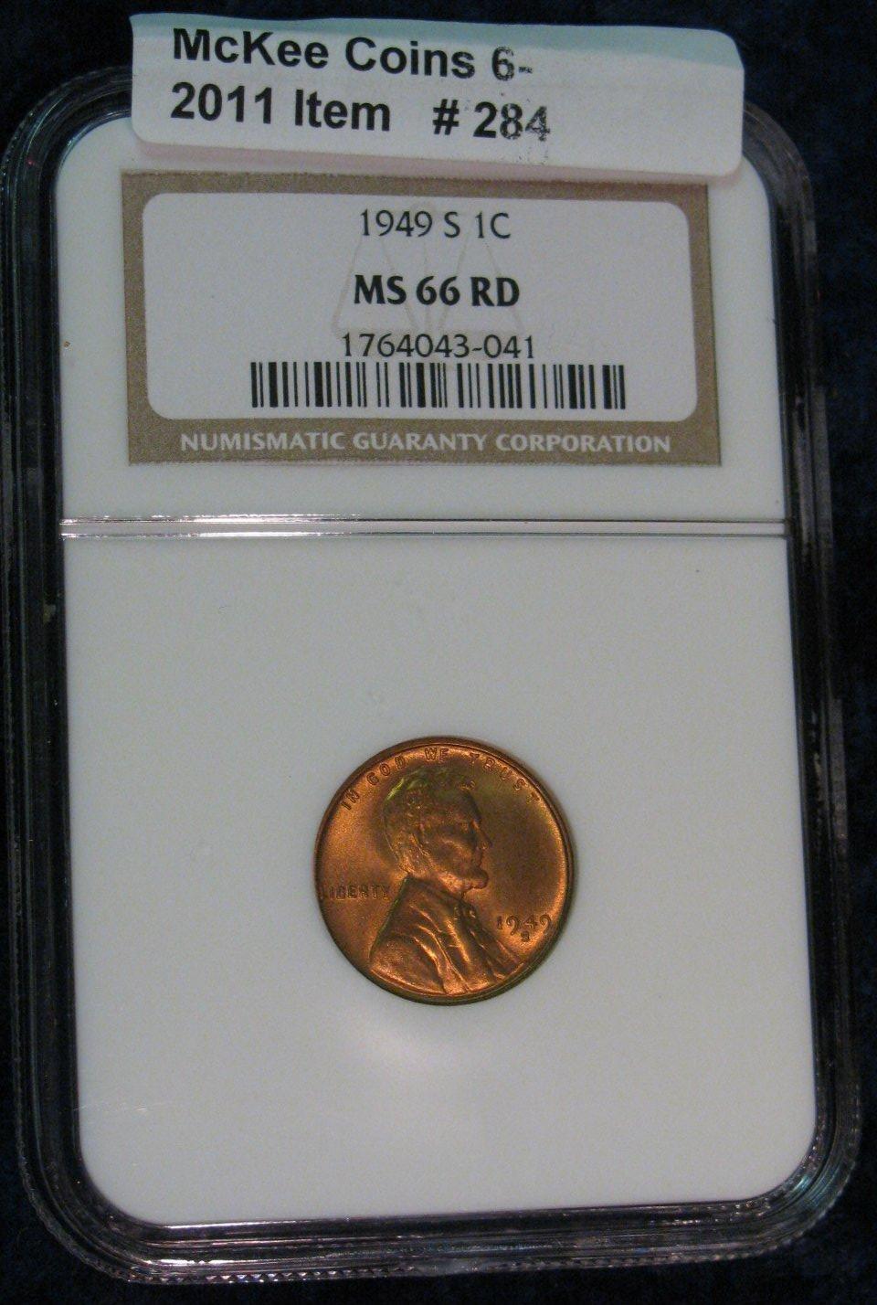284. 1949 S Lincoln Cent. NGC slabbed MS 66 RD