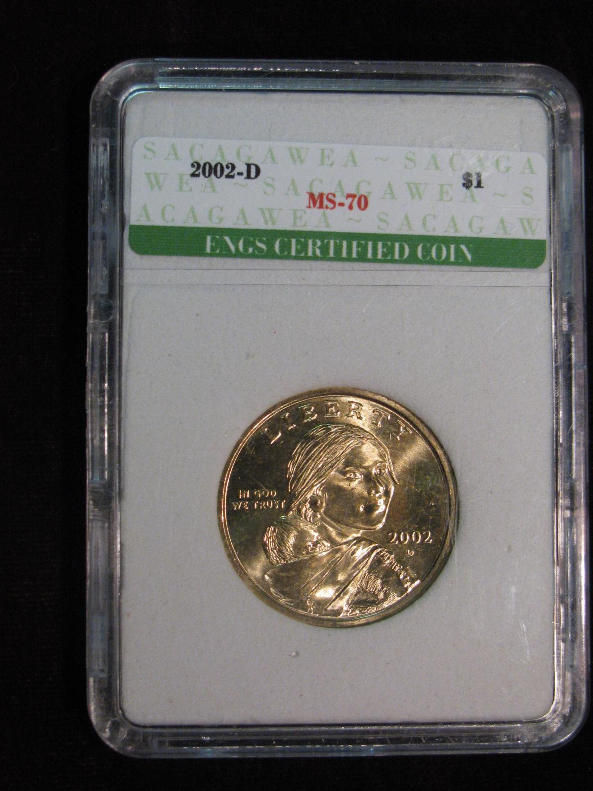284. 2002 D Sacagawea Dollar ENGS slabbed MS 70. Est. Value $25.00