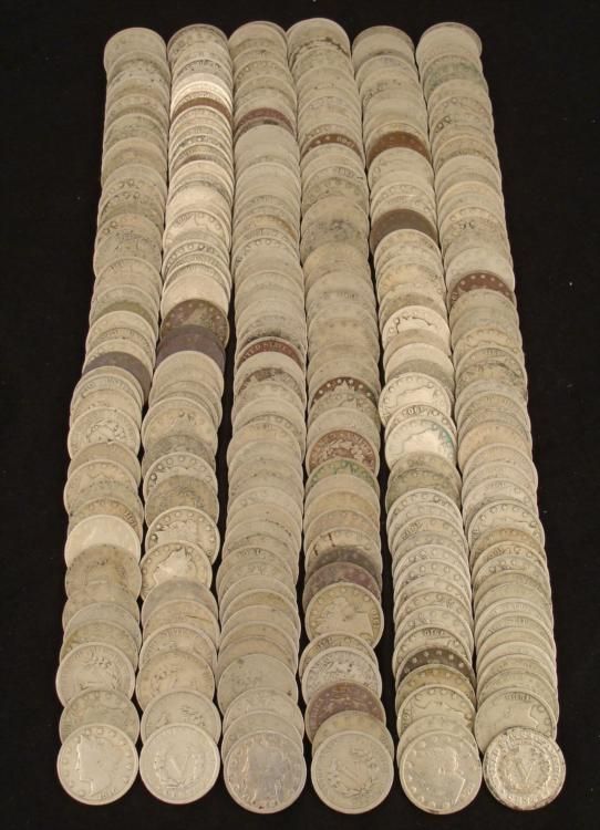 285 Liberty V Nickels, most with full dates * Dates: 1889-1910Condition: Low Grade