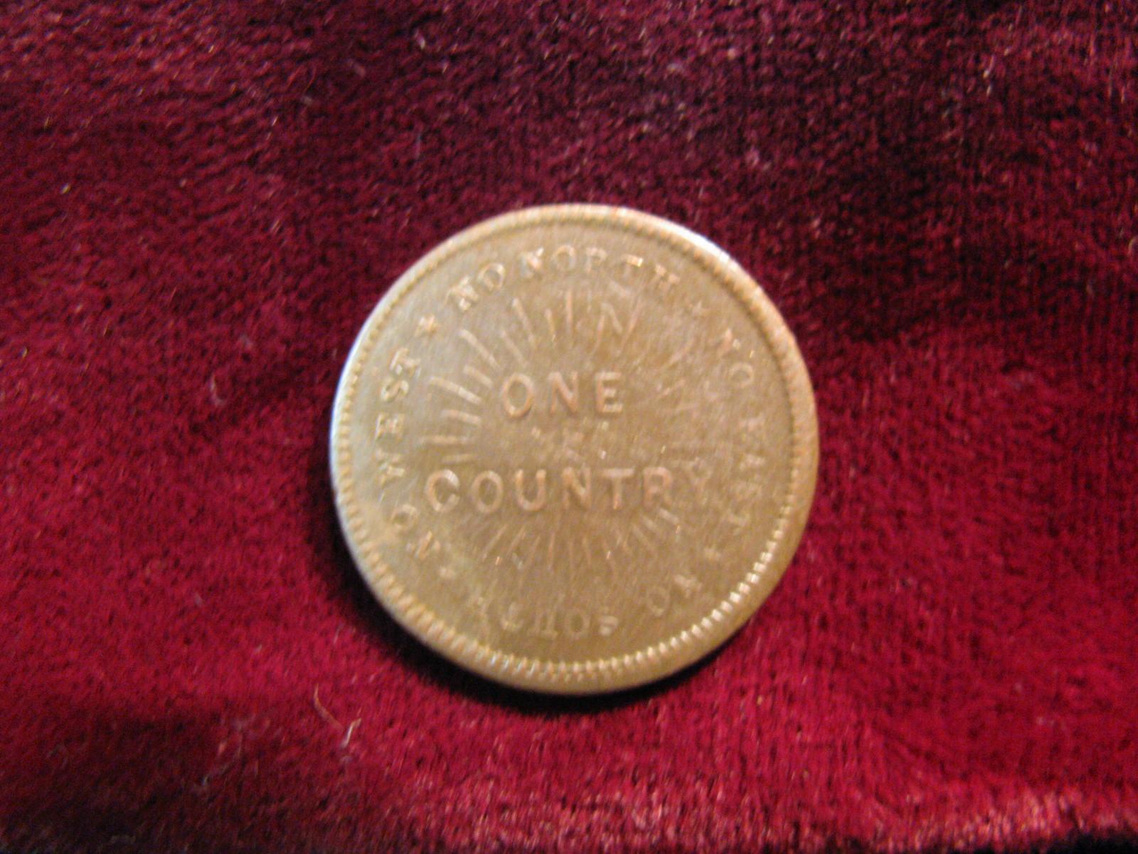2857. No Date,Civil War Token,"Indian Head"/"One Country" . AU